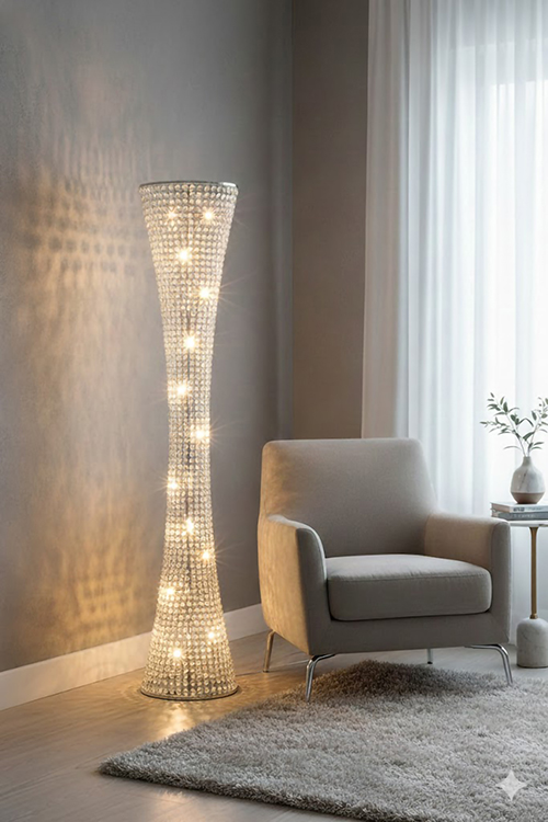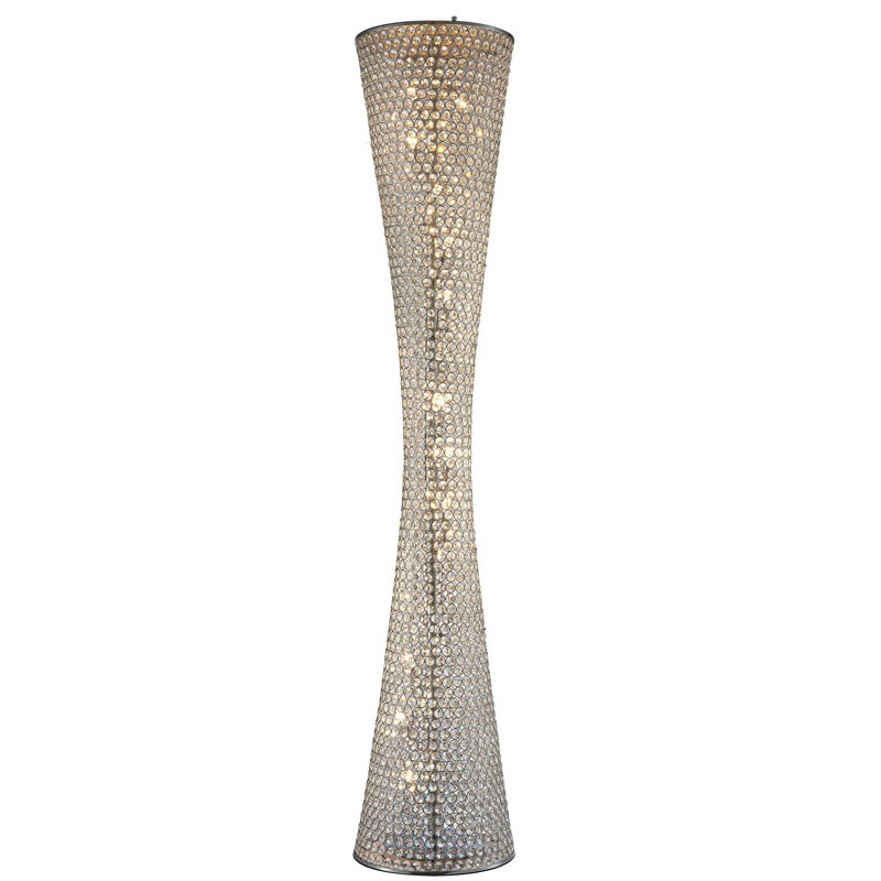 A CLEAR CRYSTAL BEADED FRAME FLOOR LAMP WITH CHROME HARDWARE