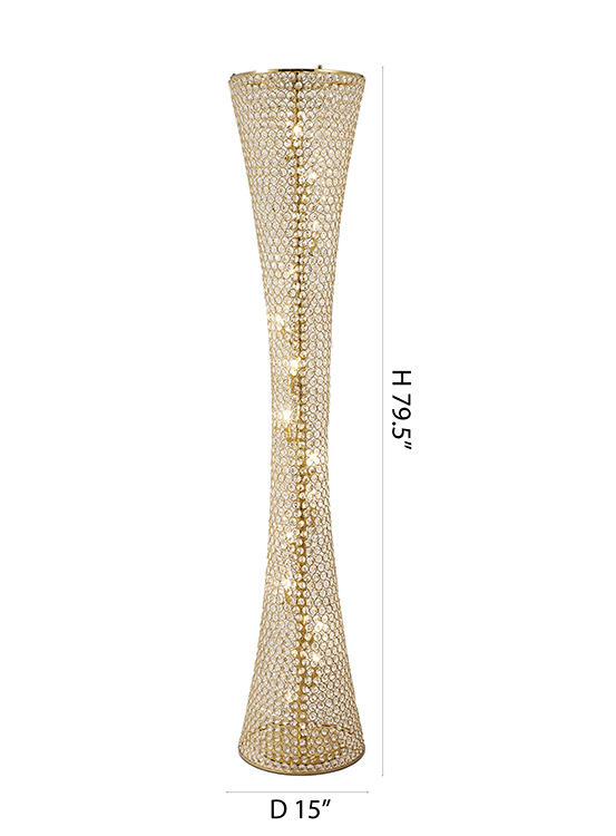 A CLEAR CRYSTAL BEADED FRAME FLOOR LAMP WITH GOLD HARDWARE