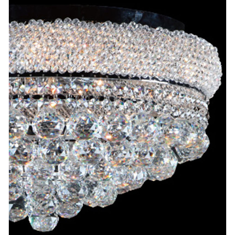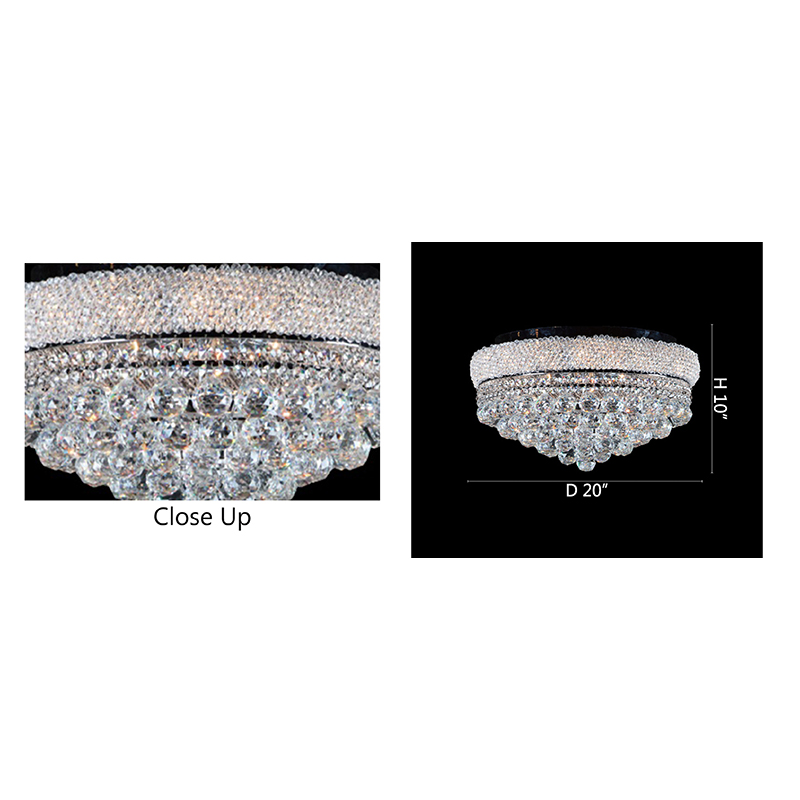 A CHROME FRAME WITH A CLEAR CRYSTAL BEADED BAND & CLEAR HANGING CRYSTALS FLUSH MOUNT