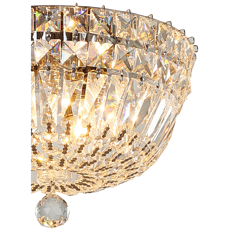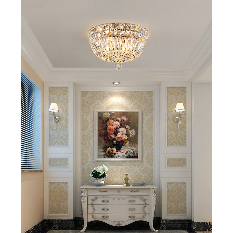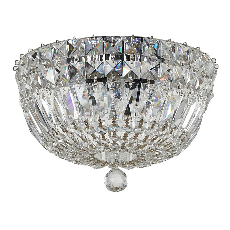 A CLEAR CRYSTAL FLUSHMOUNT WITH A CHROME METAL FRAME