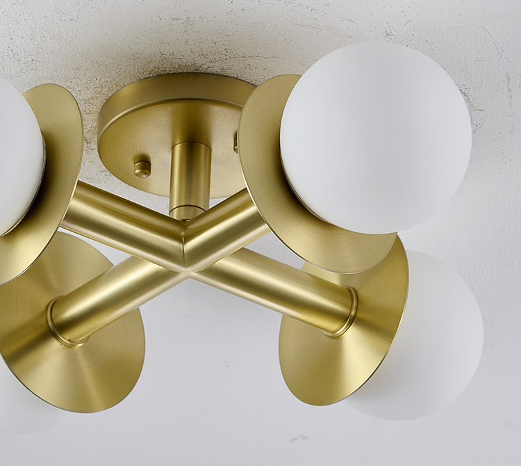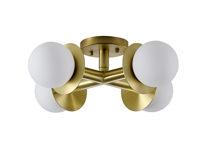 SATIN BRASS FLUSH MOUNT WITH WHITE FROSTED GLASS GLOBE SHADES