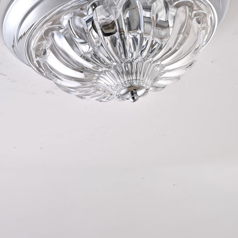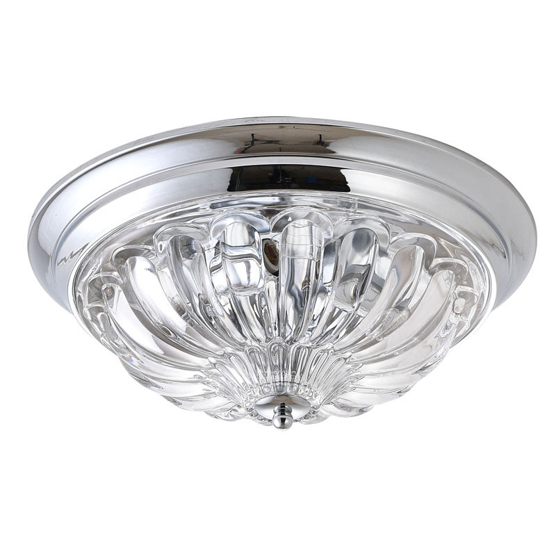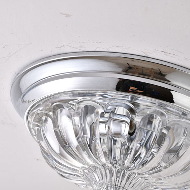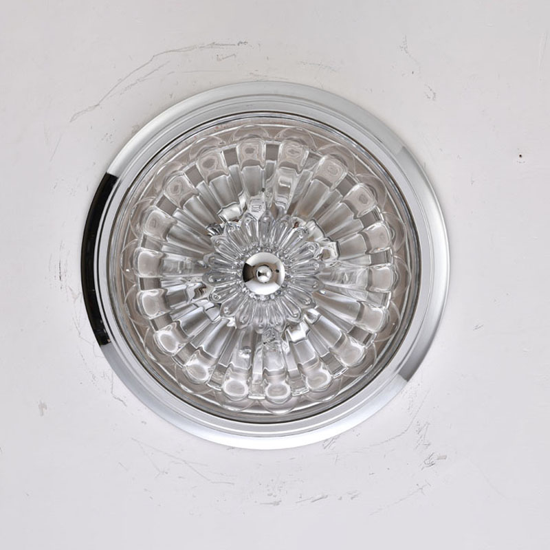 A CHROME FRAME FLUSH MOUNT WITH A CLEAR GLASS SHADE
