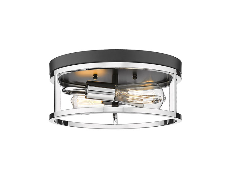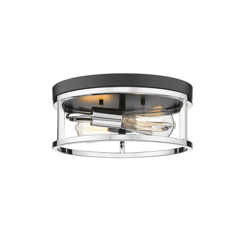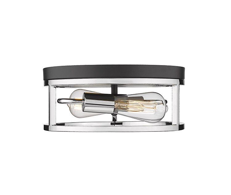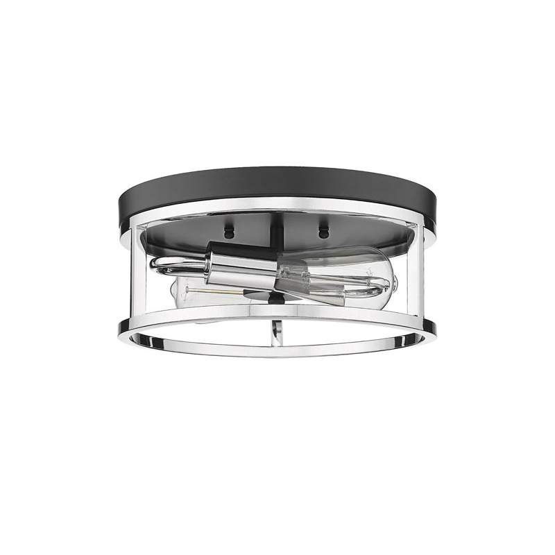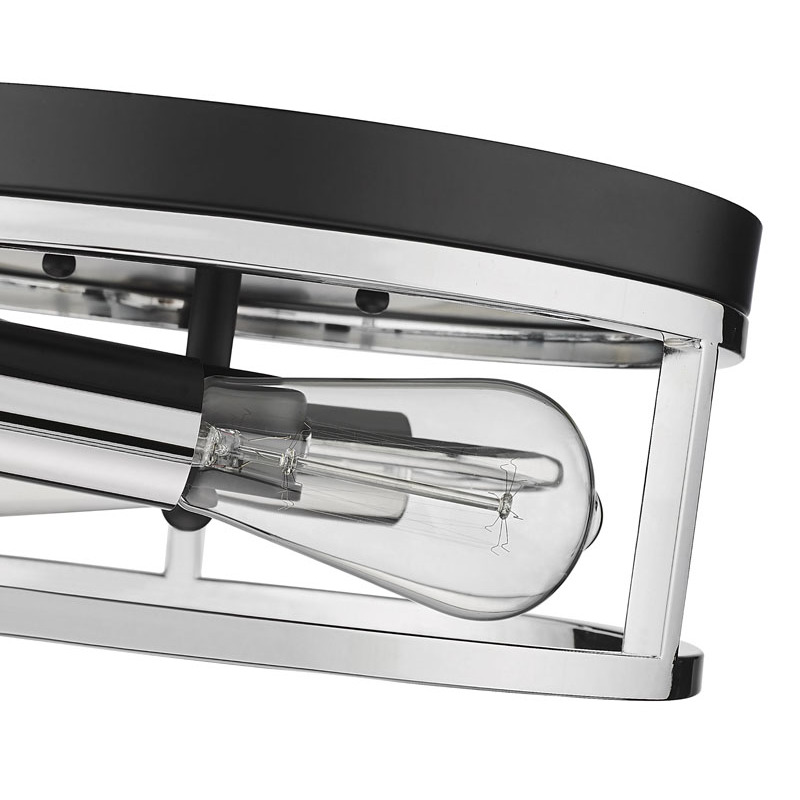 A ROUND BLACK & CHROME FRAMED FLUSH MOUNT LIGHT