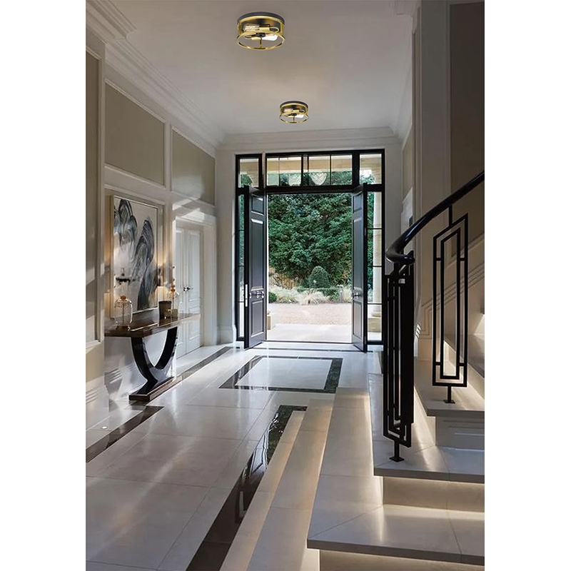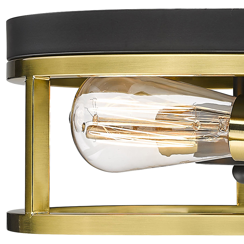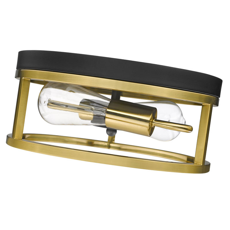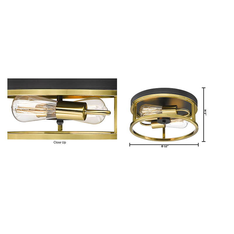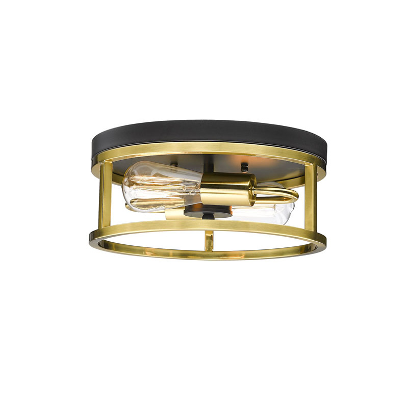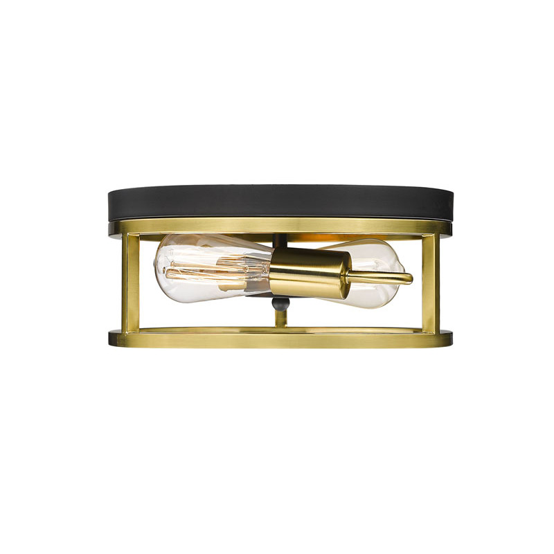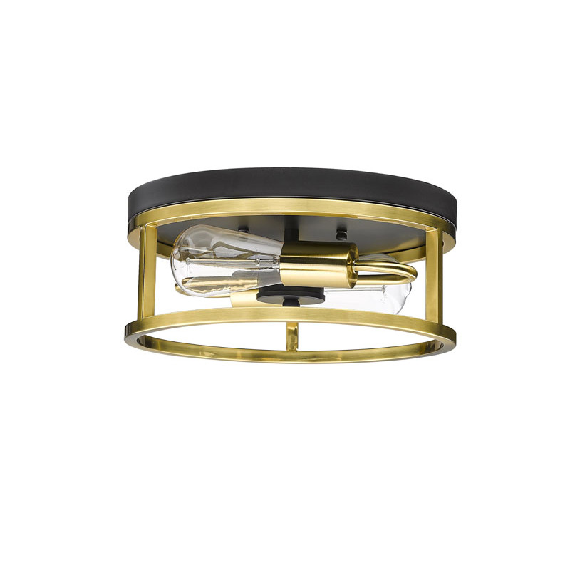 A ROUND BLACK & GOLD FRAMED FLUSH MOUNT LIGHT