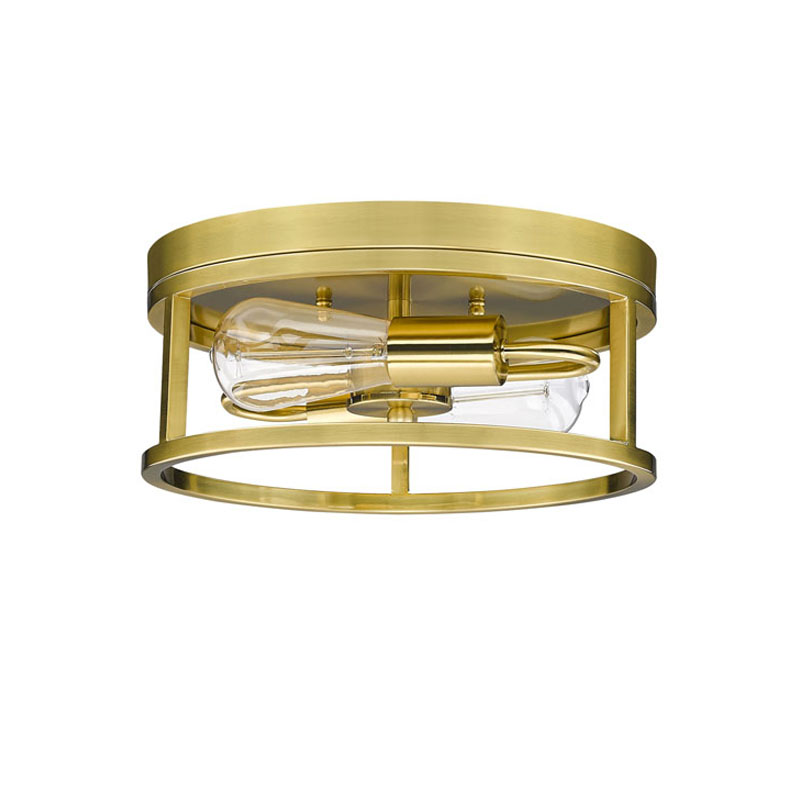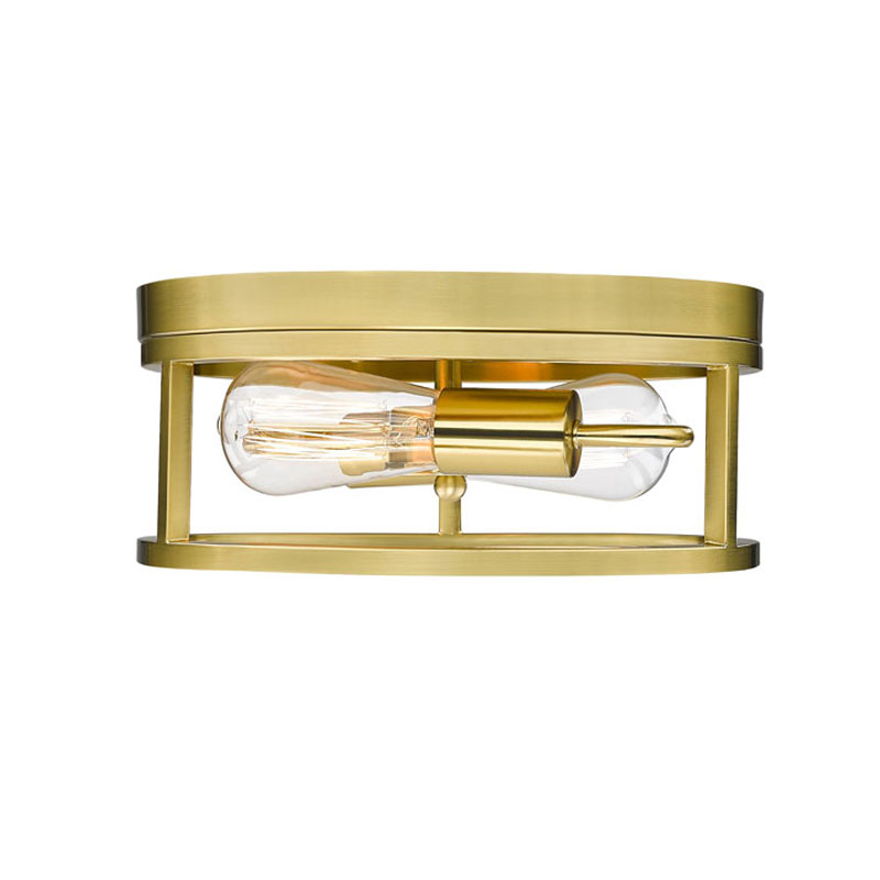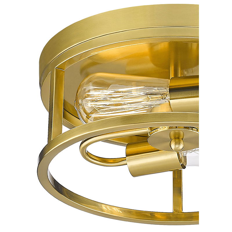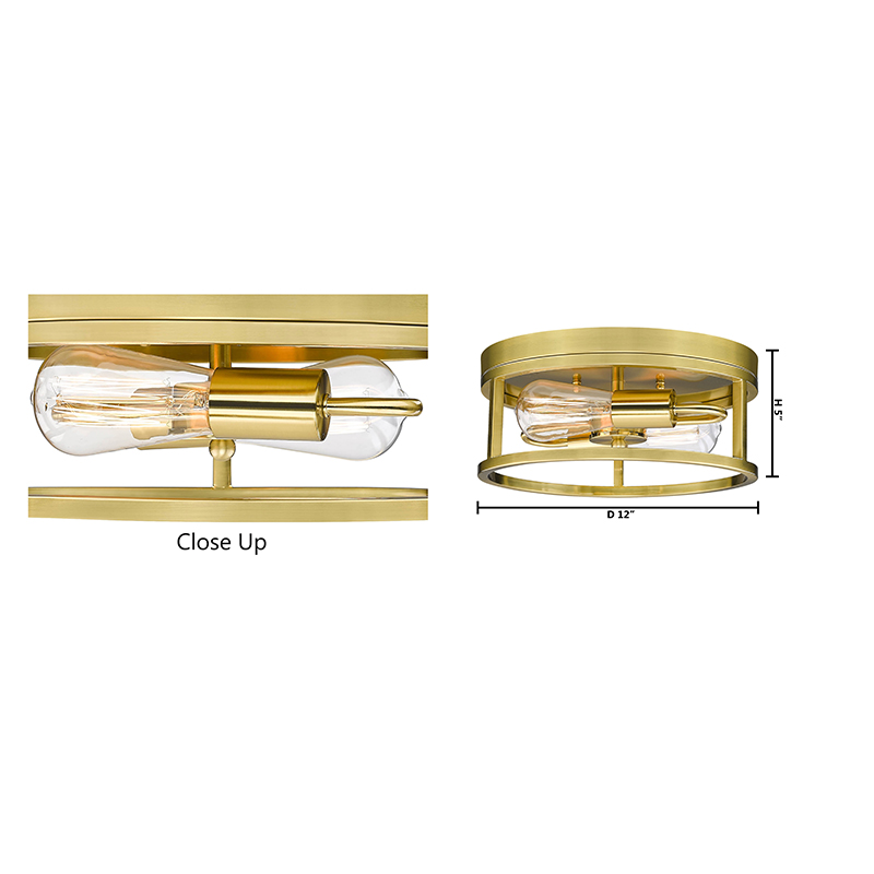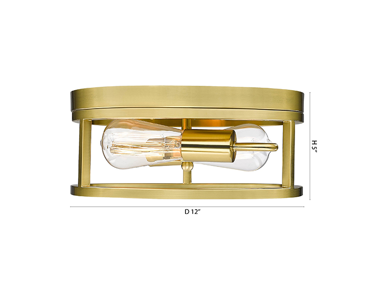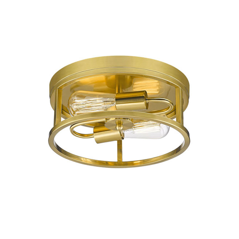 A ROUND GOLD IRON FRAMED FLUSH MOUNT LIGHT