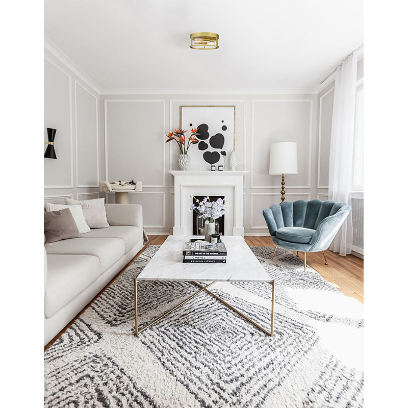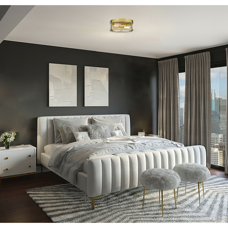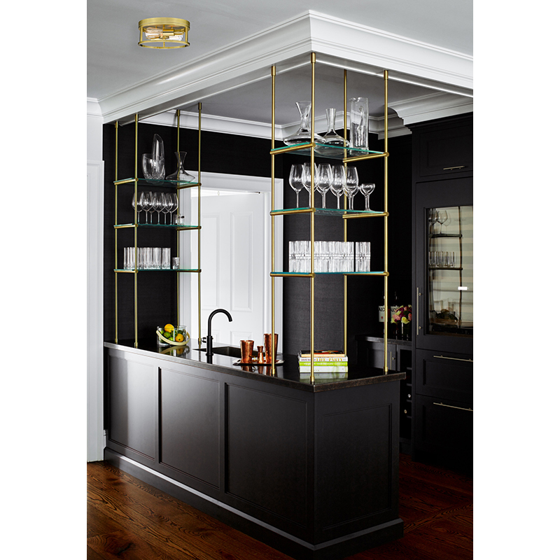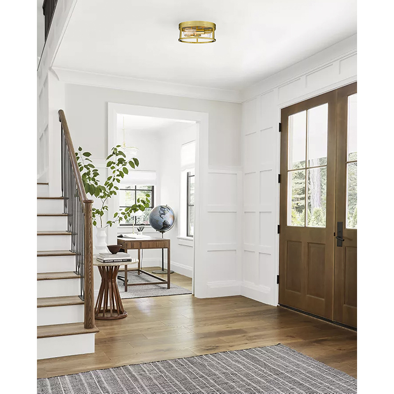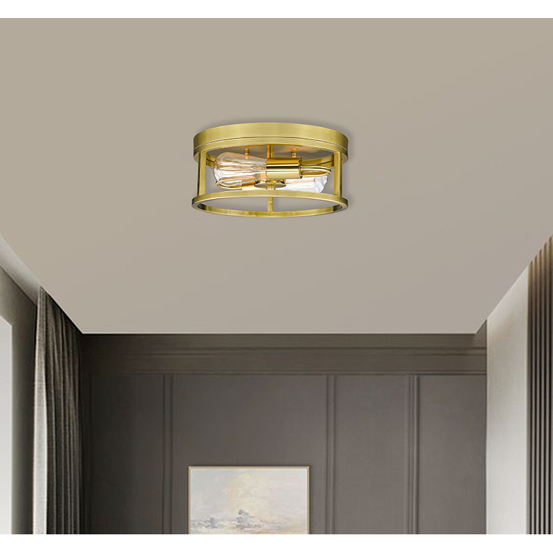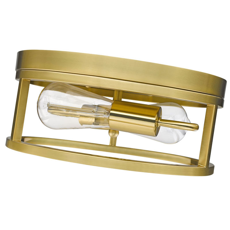 A ROUND GOLD IRON FRAMED FLUSH MOUNT LIGHT