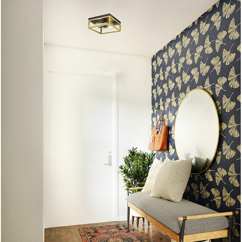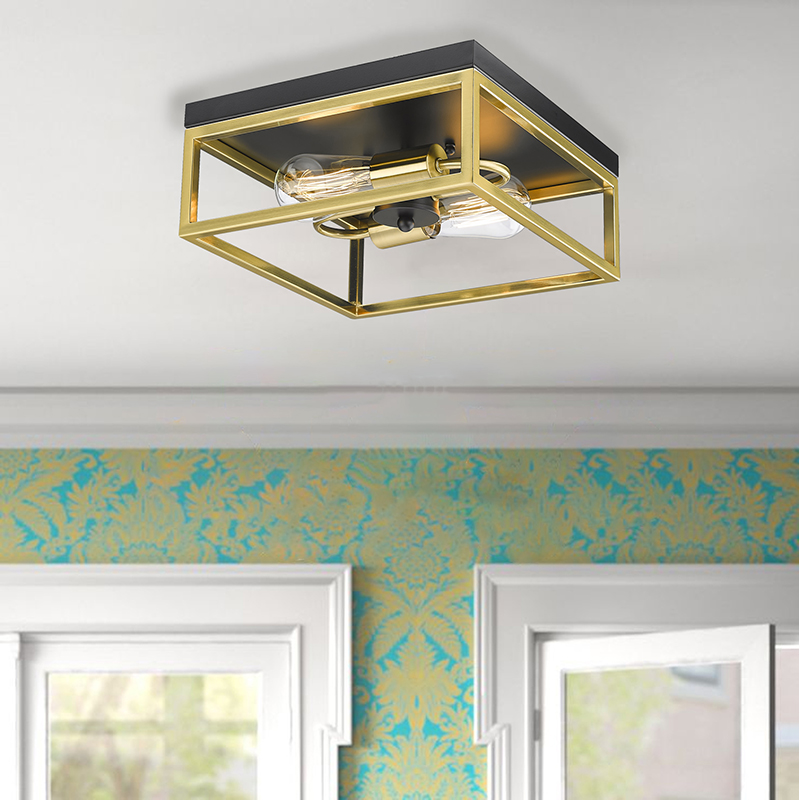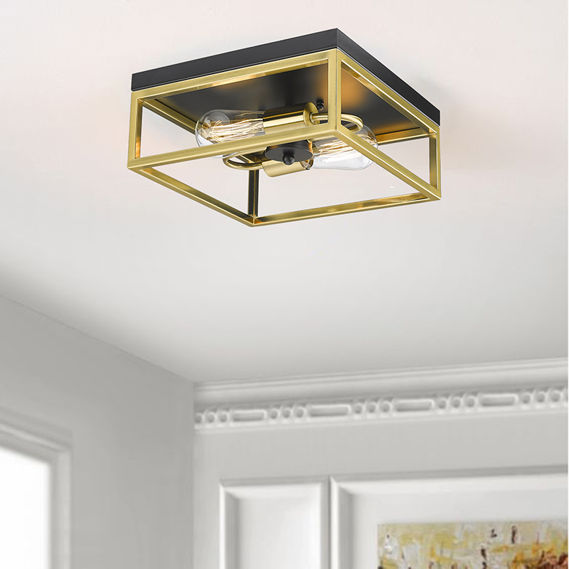 A BLACK AND GOLD BOX FLUSH MOUNT