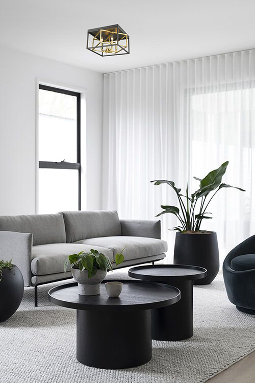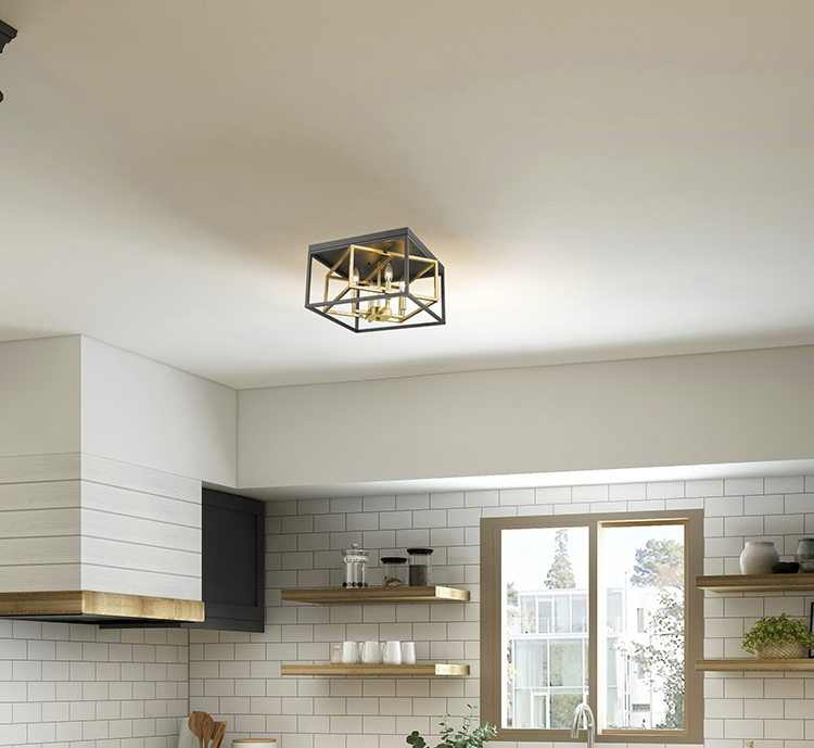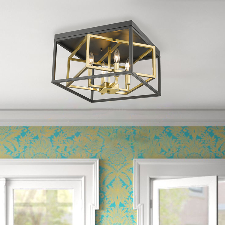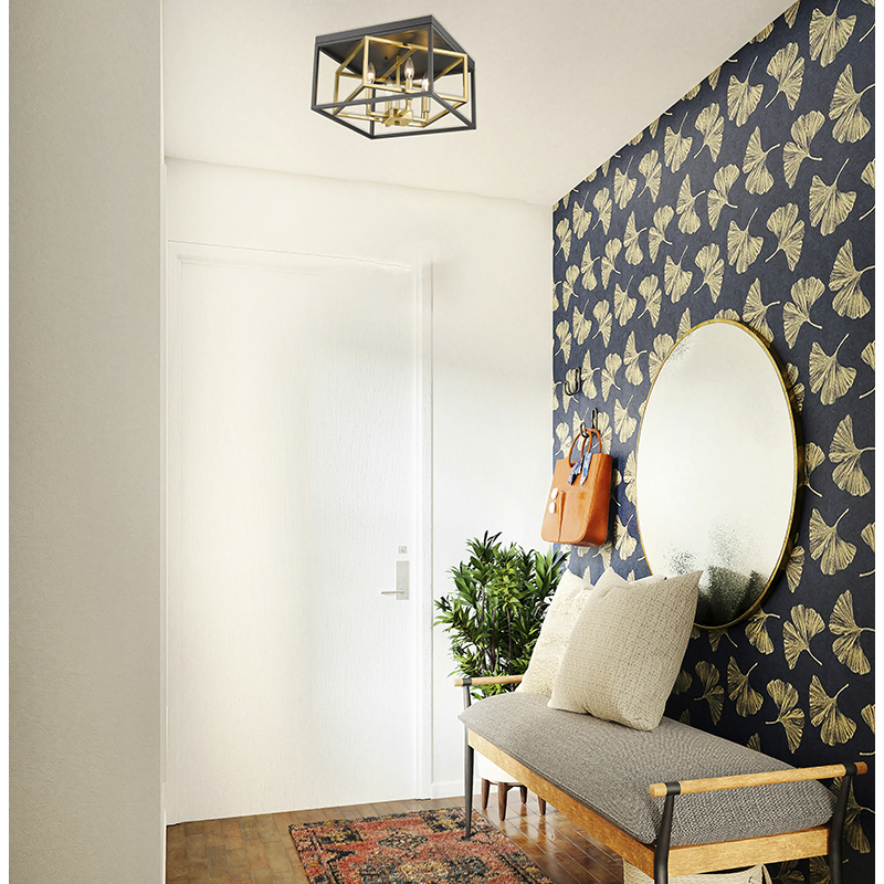 A BLACK AND GOLD INTERLOCKED BOX FLUSH MOUNT