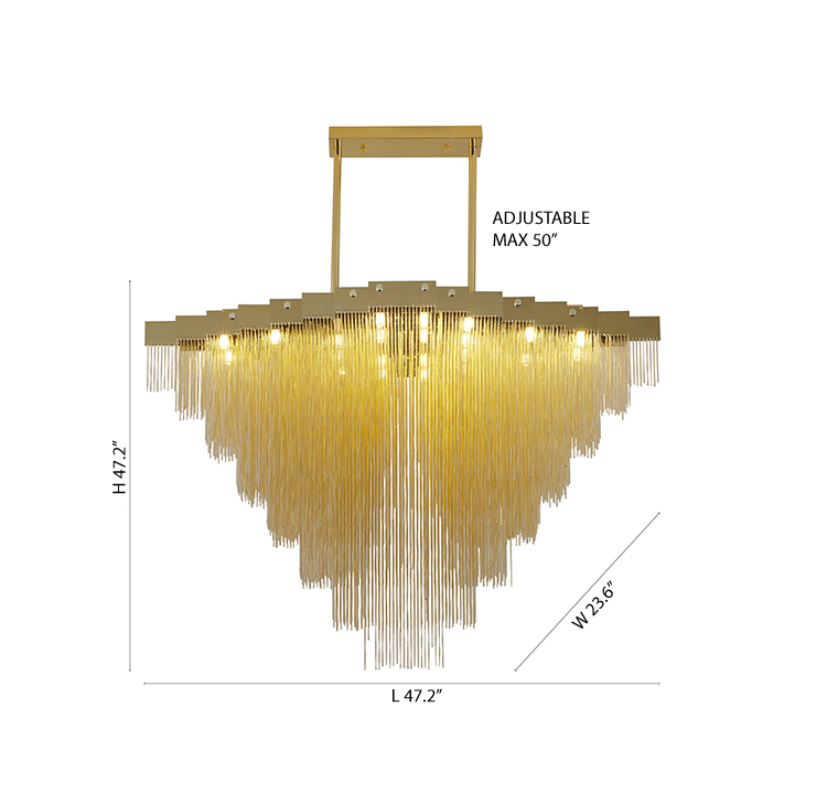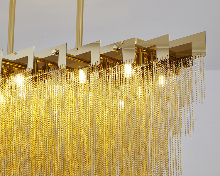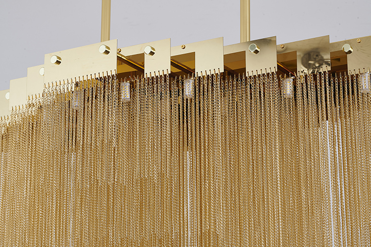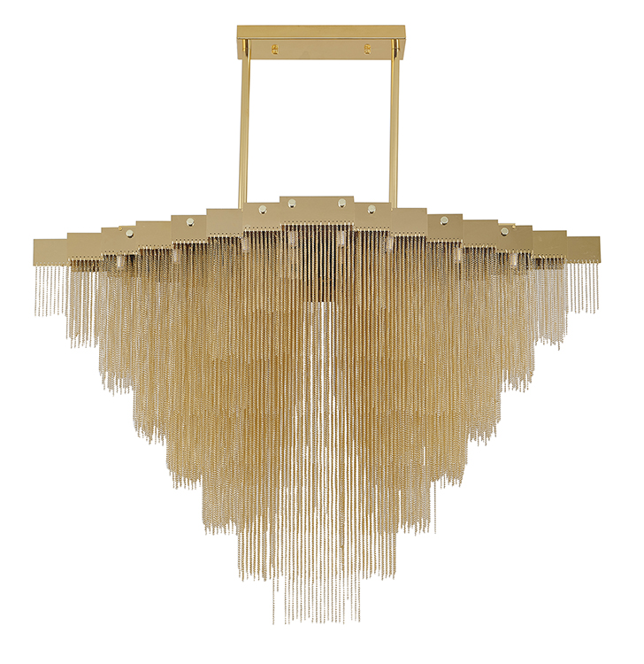 A GOLD PRISM CHANDELIER WITH HANGING ALUMINIUM CHAINS