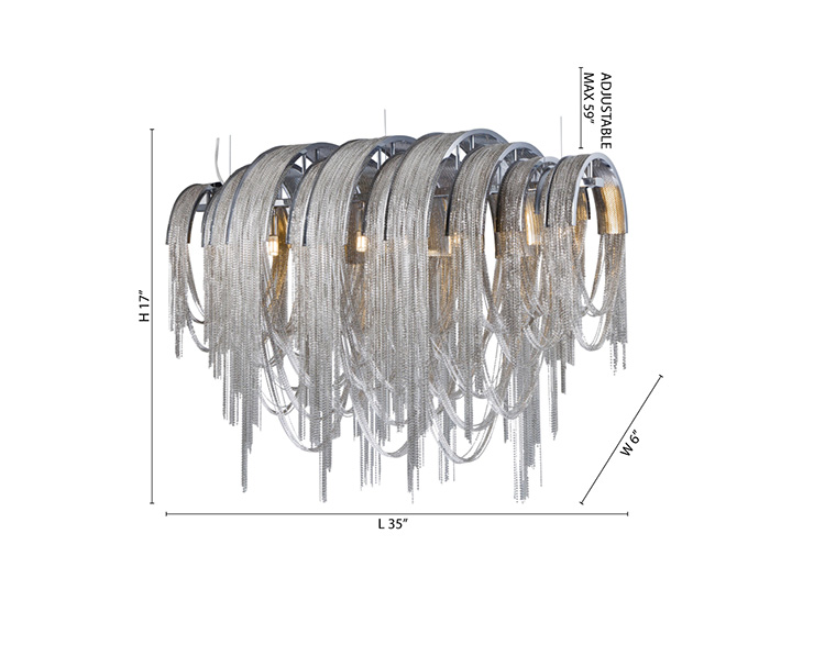 AN IRON CHAIN WATERFALL CHANDELIER WITH CHROME HARDWARE