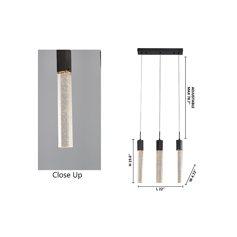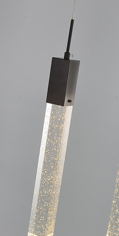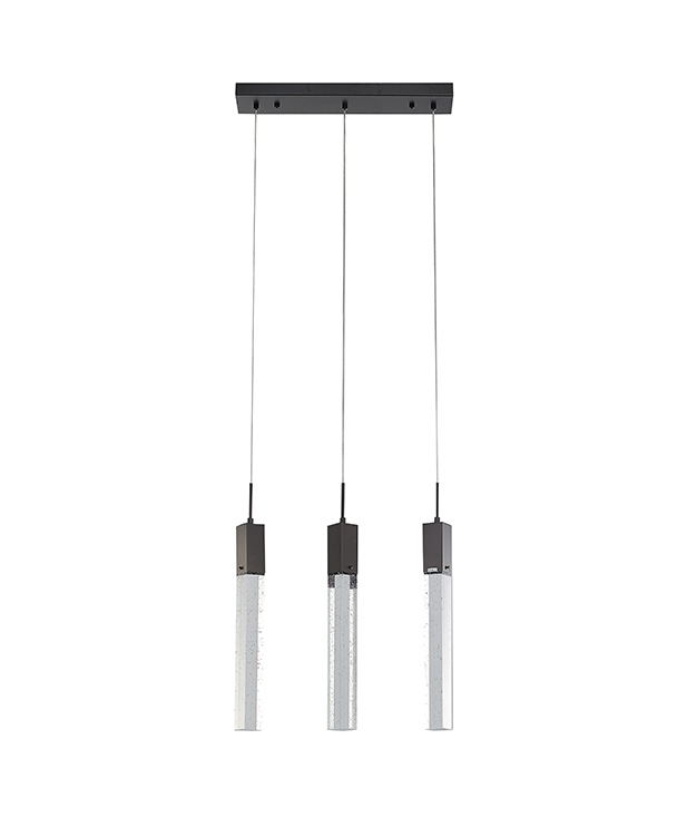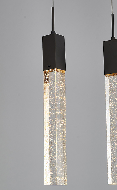 A BLACK GUN METAL FRAME ISLAND LIGHT WITH HANGING CLEAR BUBBLE BLOCK CRYSTALS
