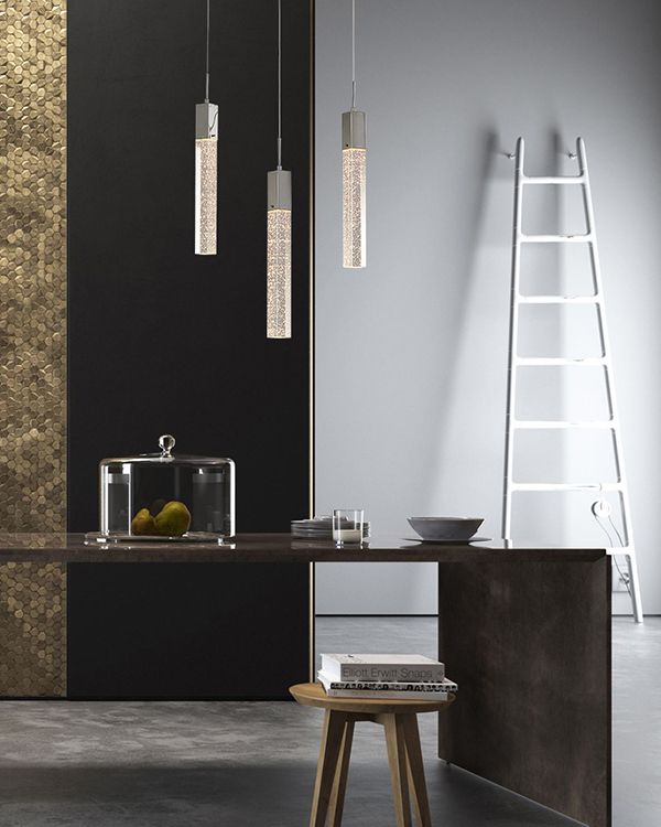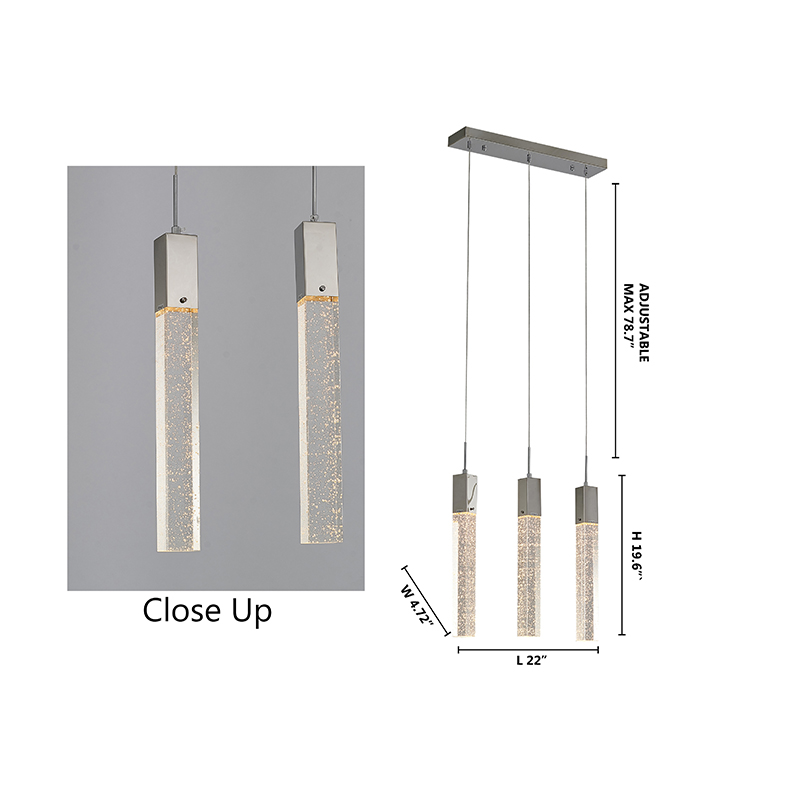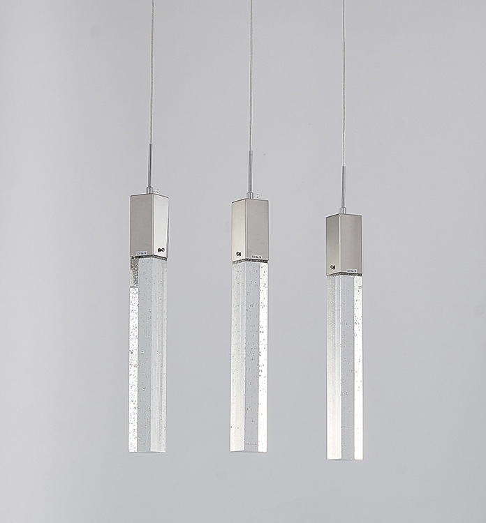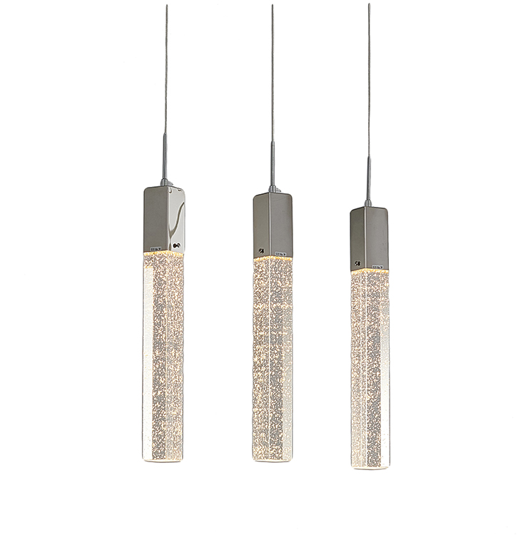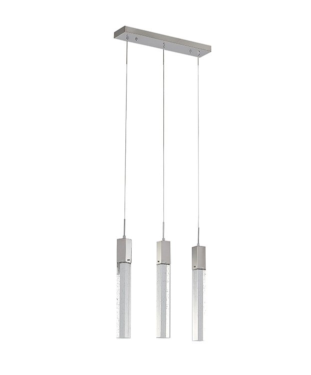 A CHROME FRAME ISLAND LIGHT WITH HANGING CLEAR BUBBLE BLOCK CRYSTALS
