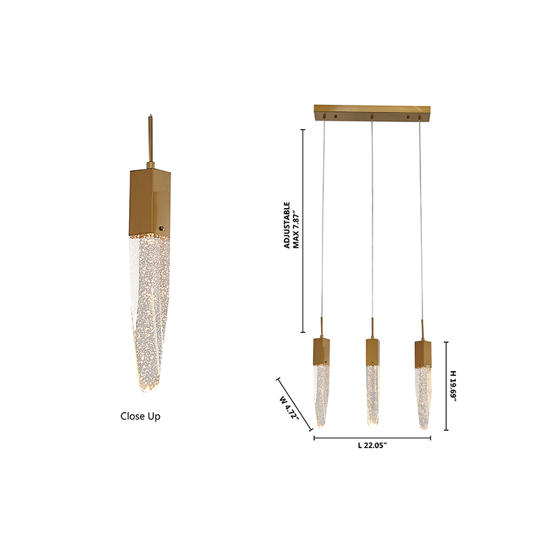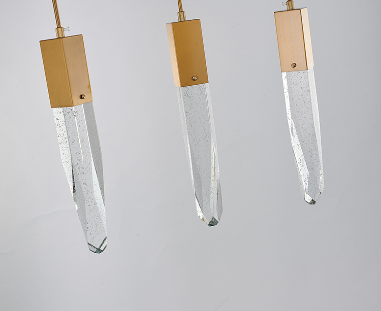 A GOLD FRAME ISLAND LIGHT WITH CLEAR HANGING BUBBLE CRYSTAL PENDANTS