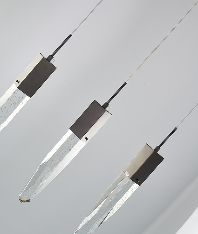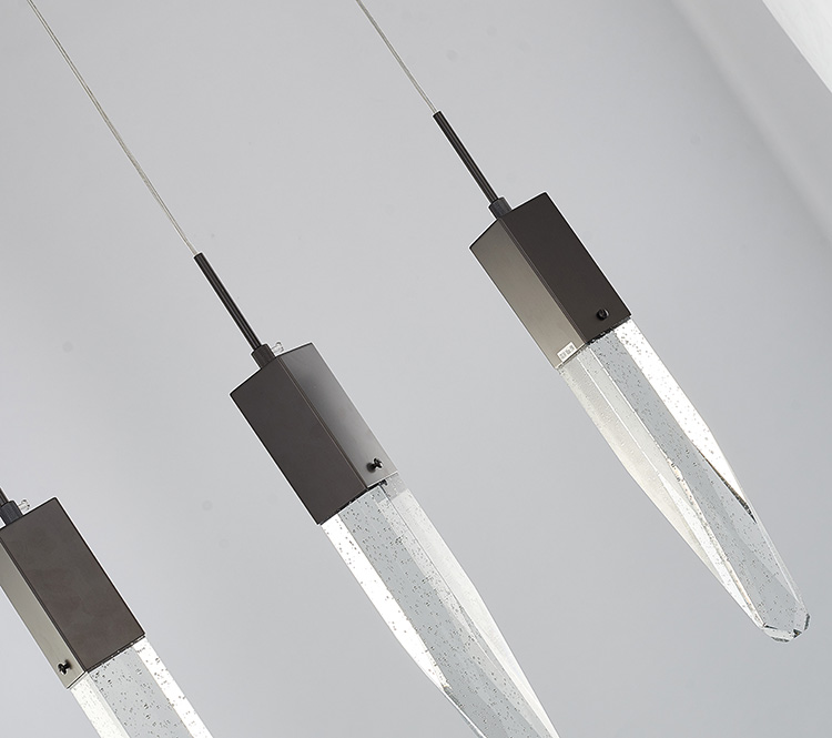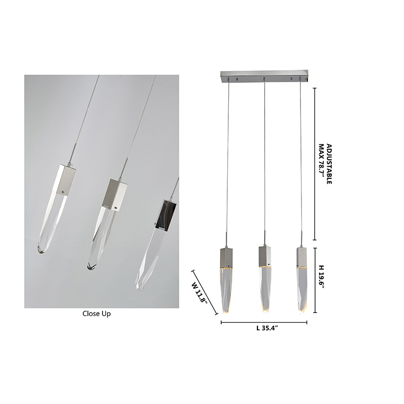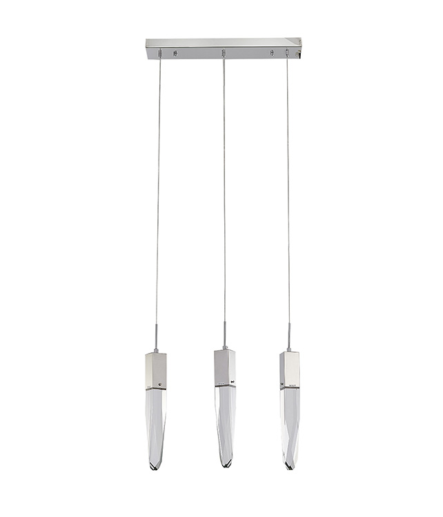A CHROME FRAME ISLAND LIGHT WITH CLEAR HANGING ICEBERG CRYSTAL PENDANTS