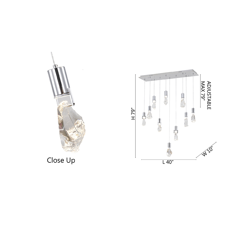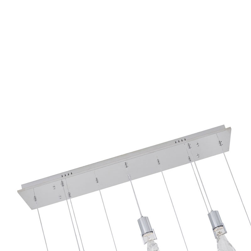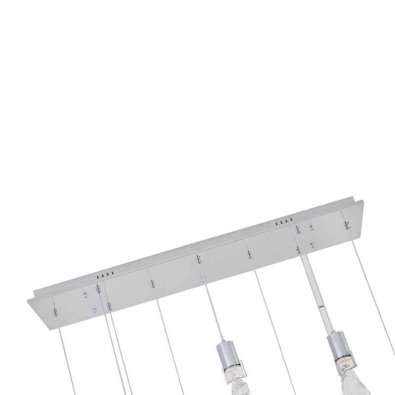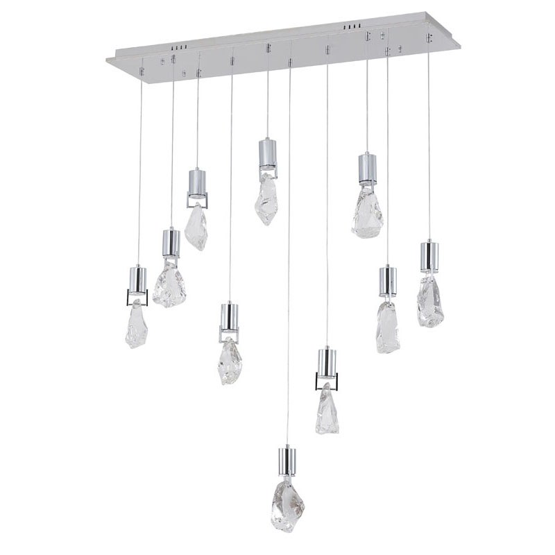 A CHROME FRAME ISLAND LIGHT WITH CLEAR CRYSTAL STONE PENDANTS
