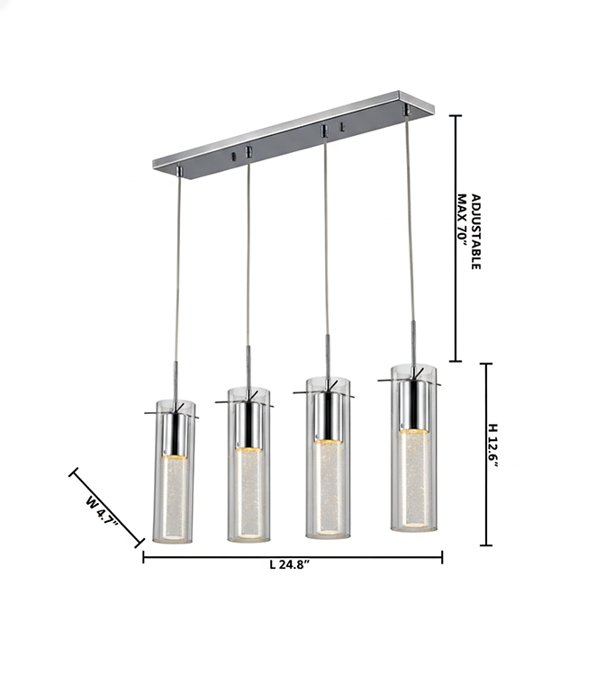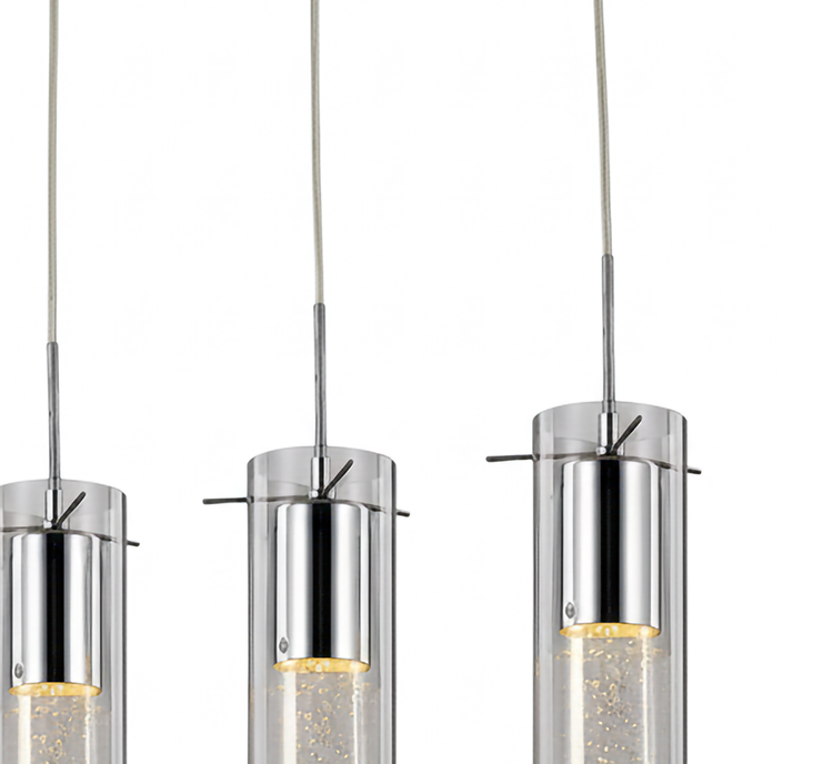 CLEAR GLASS CYLINDER FRAME WITH GLASS BUBBLE ROD AND CHROME FRAME LIGHT FIXTURE