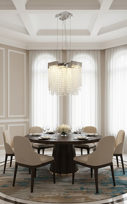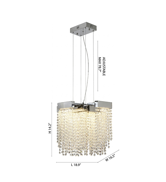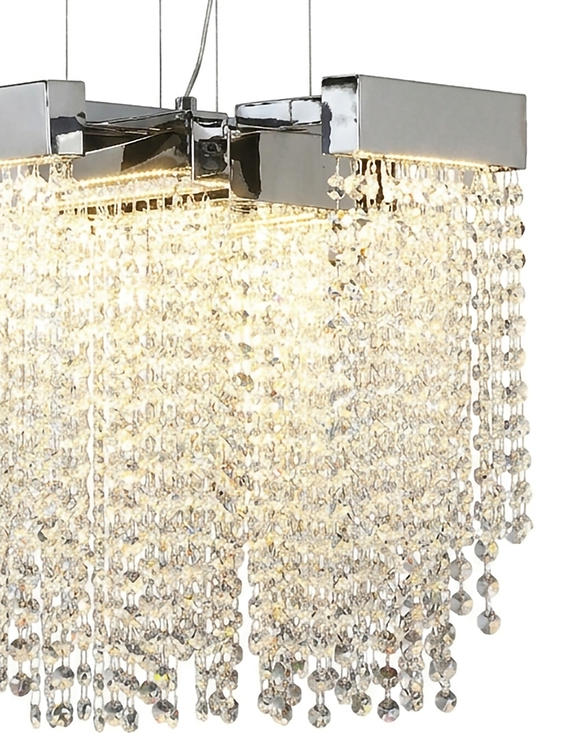 A CHROME FRAME LED LIGHT WITH CLEAR BEADED CRYSTALS DRAPING AROUND