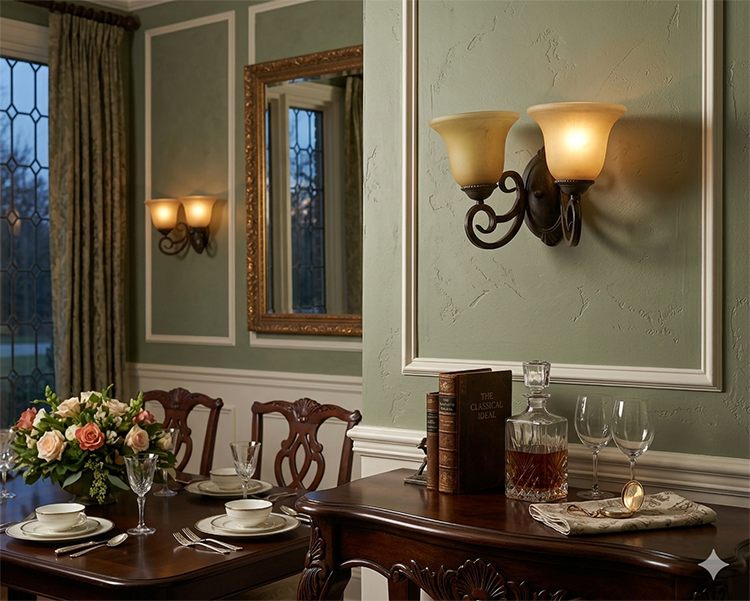 DARK BROWN FRAME WITH GLASS SHADE WALL SCONCE