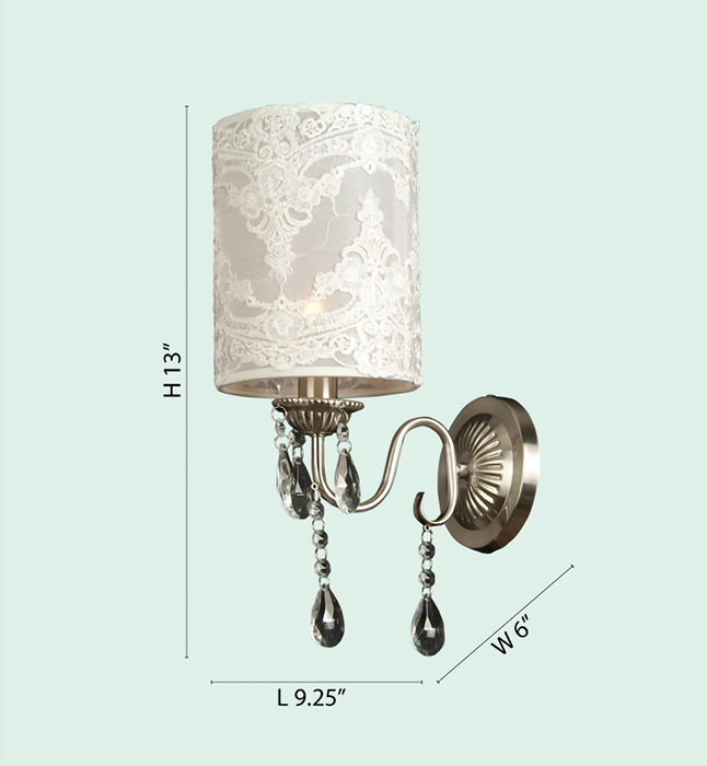 WHITE FABRIC SHADE WITH CHROME FRAME AND CLEAR CRYSTALS WALL SCONCE