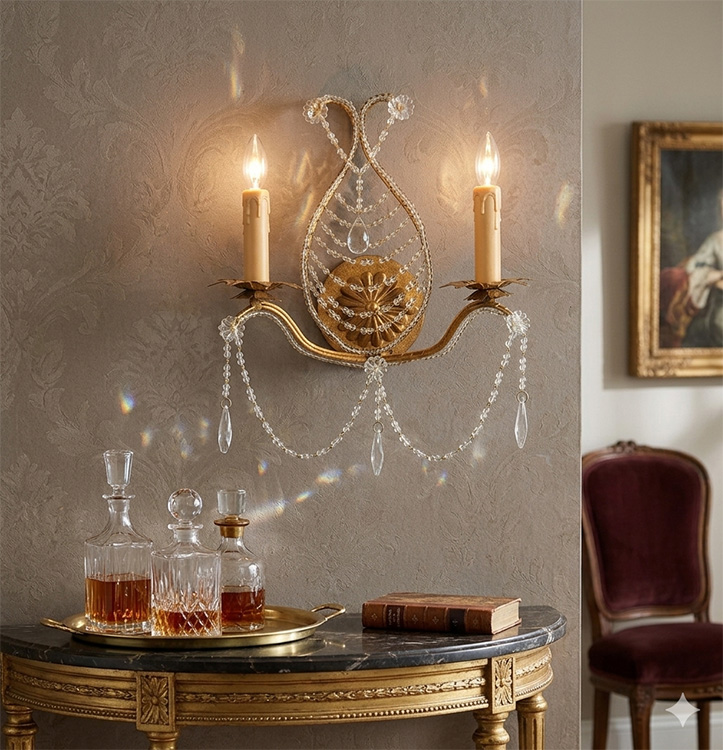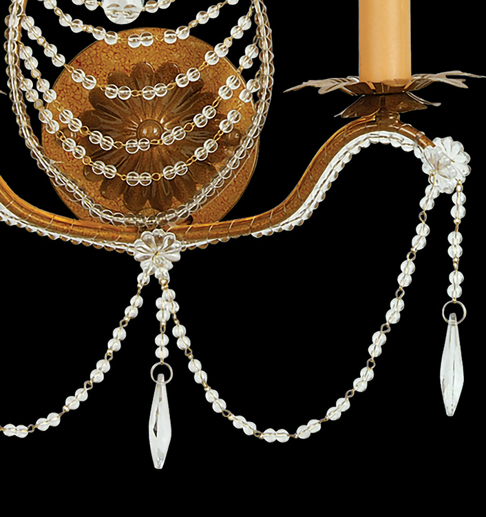 GOLDEN BRONZE FRAME WITH BEADED CLEAR CRYSTALS WALL SCONCE
