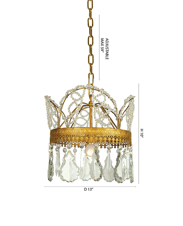 GOLD FRAME WITH CLEAR CRYSTAL SINGLE PENDANT LIGHT