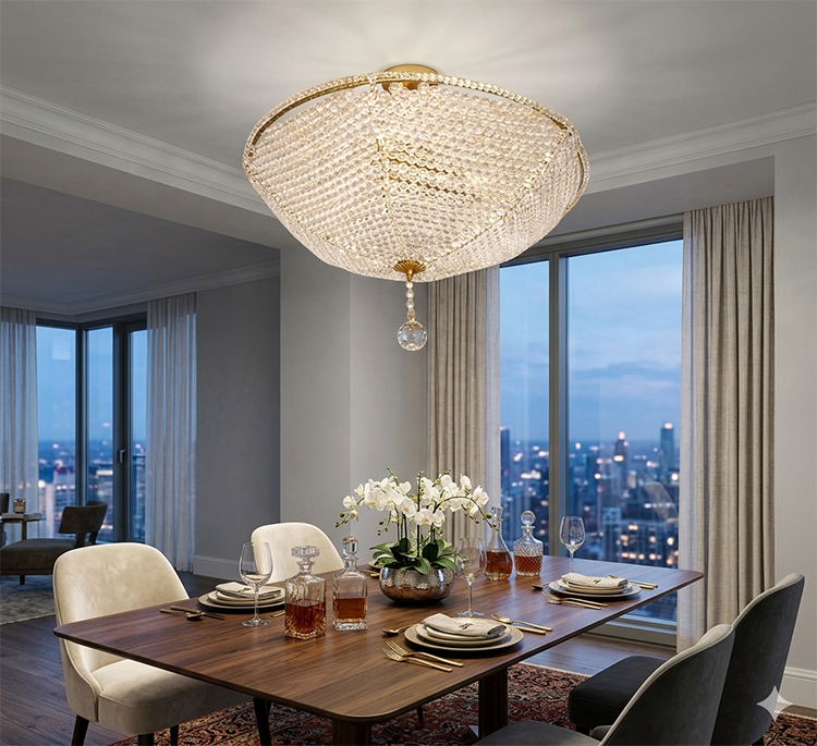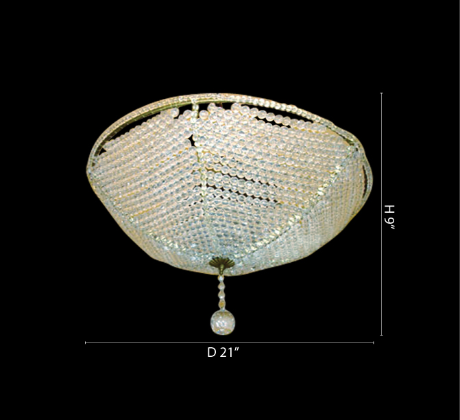 CLEAR CRYSTAL BEADED FLUSHMOUNT WITH CRYSTAL DROP
