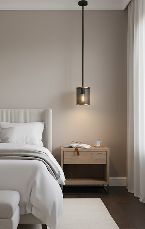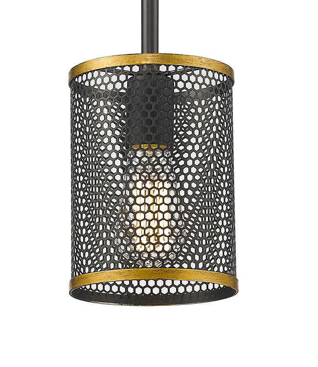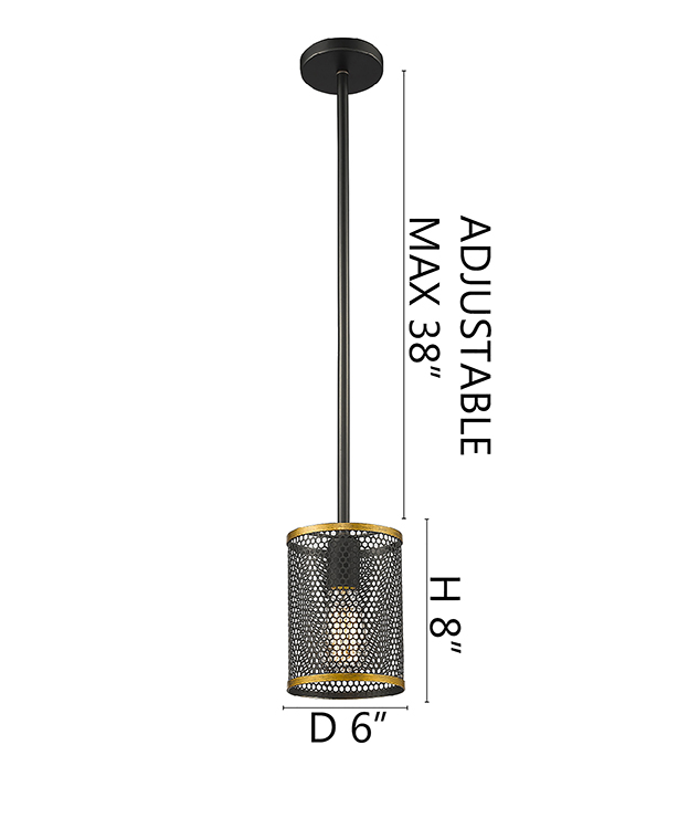 BLACK METAL SINGLE PENDANT LIGHT WITH GOLD TRIM