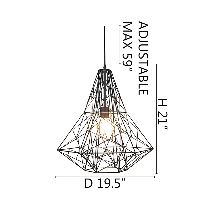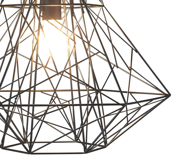 A BLACK METAL GEOMETRIC SHADE SINGLE PENDANT LIGHT