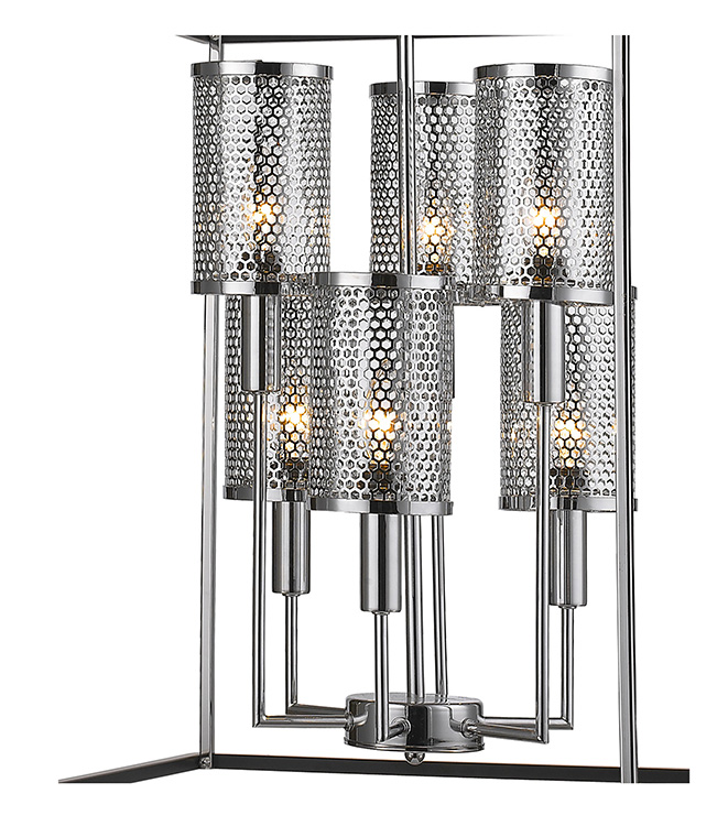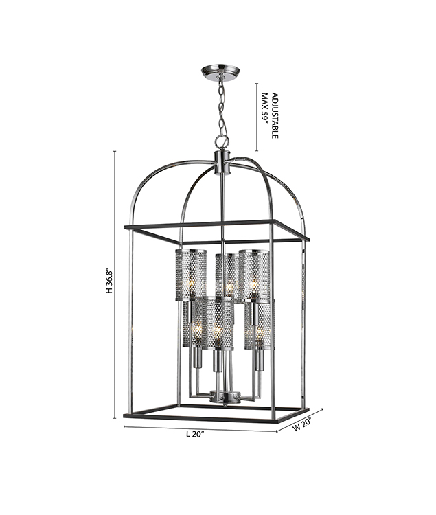 BLACK AND CHROME CAGE FRAME WITH METAL DOT SHADE LIGHT FIXTURE