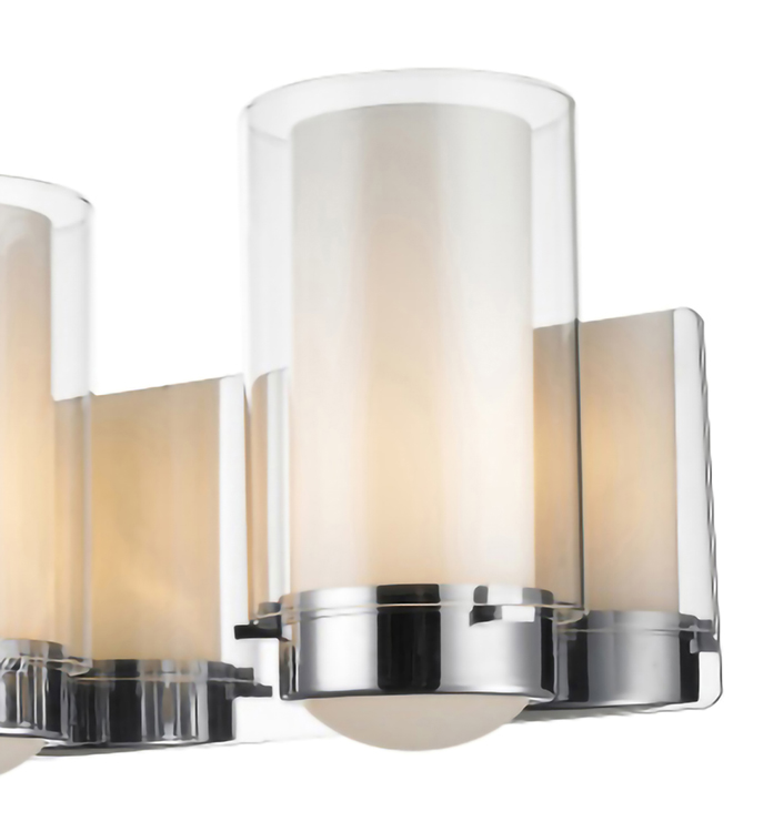 A SATIN NICKEL FRAME WALL SCONCE WITH CLEAR AND WHITE GLASS SHADES