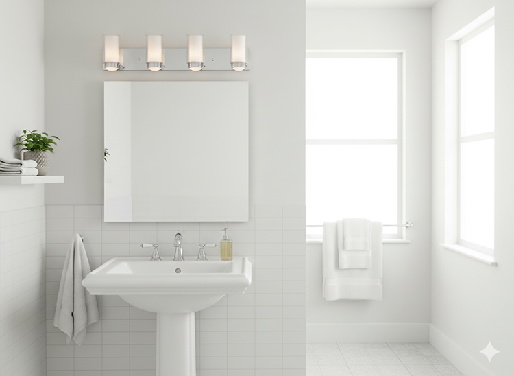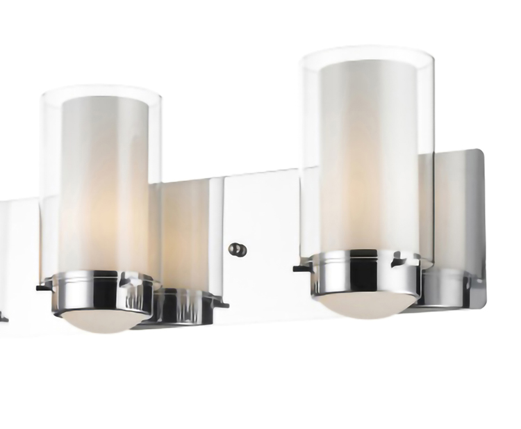 A SATIN NICKEL FRAME WALL SCONCE WITH CLEAR AND WHITE GLASS SHADES