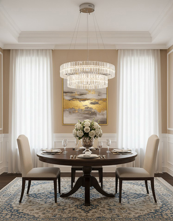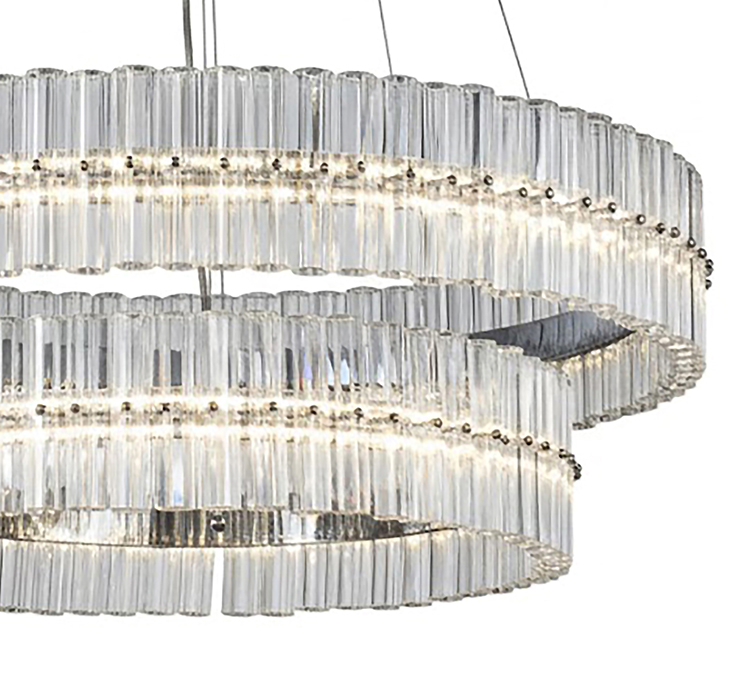 A TWO TIER GLASS HALO LED CEILING FIXTURE WITH CHROME HARDWARE