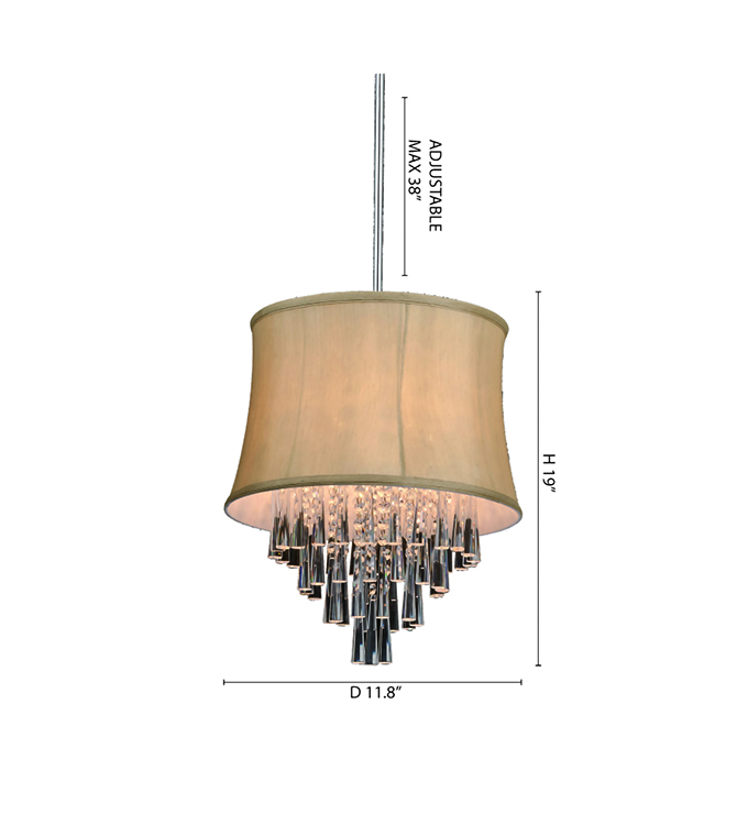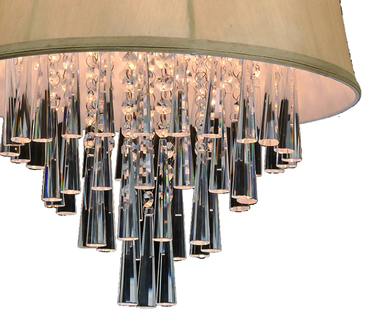 BEIGE ROUND DRUM SHADE WITH CLEAR CRYSTAL DROPS (HUNG BY ADJUSTABLE CORDS)