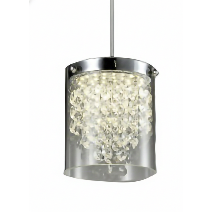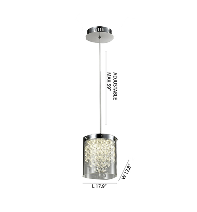CLEAR CRYSTAL WITH GLASS SHADE AND CHROME FRAME SINGLE PENDANT LED LIGHT