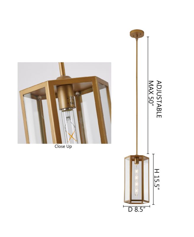 A BRASS OUTDOOR PENDANT LIGHT WITH A CLEAR GLASS SHADE