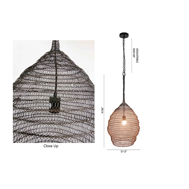 A BLACK POWDER COAT CHAIN BASKET LIGHT