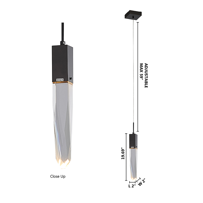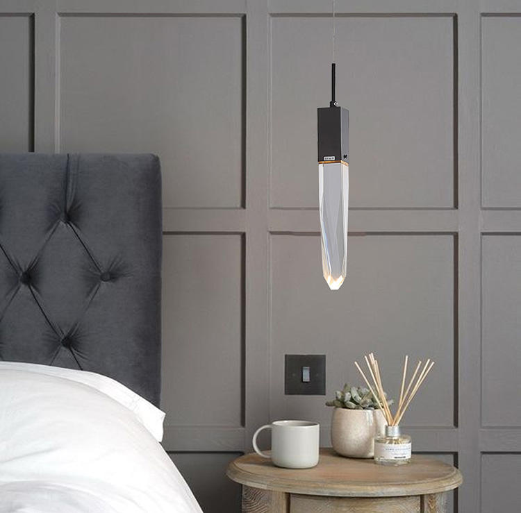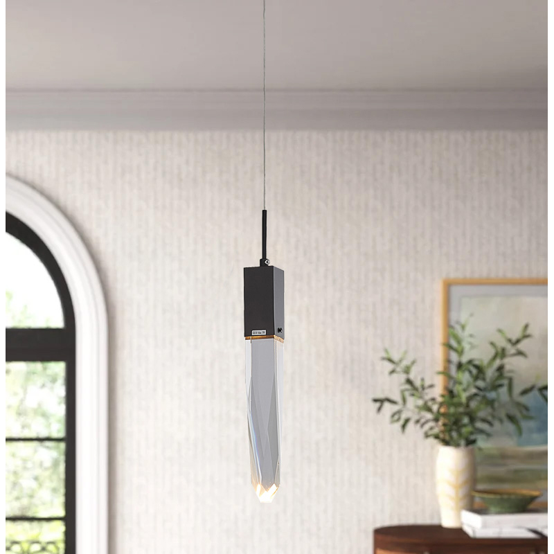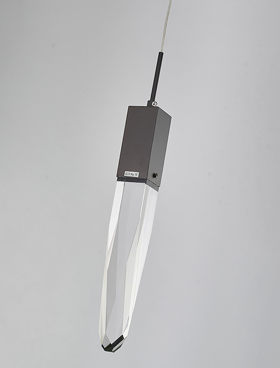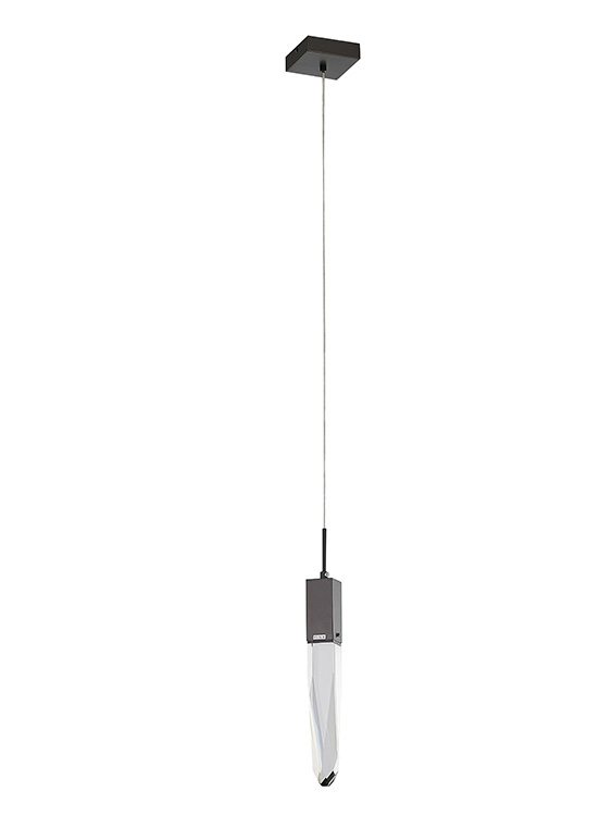 A BLACK GUN METAL FRAME SINGLE PENDANT LIGHT WITH A CLEAR ICEBERG CRYSTAL