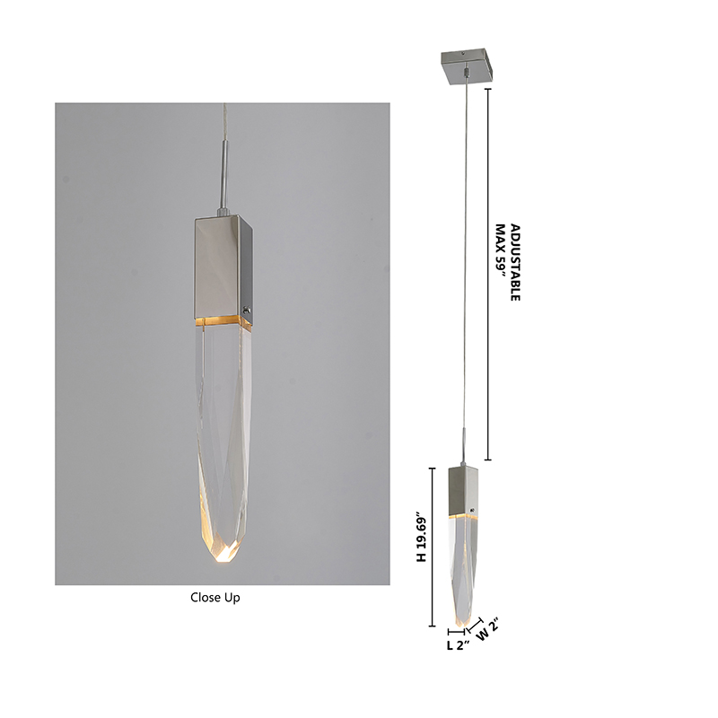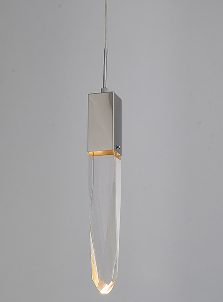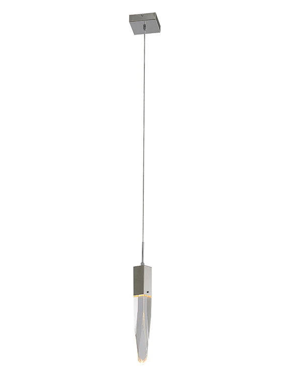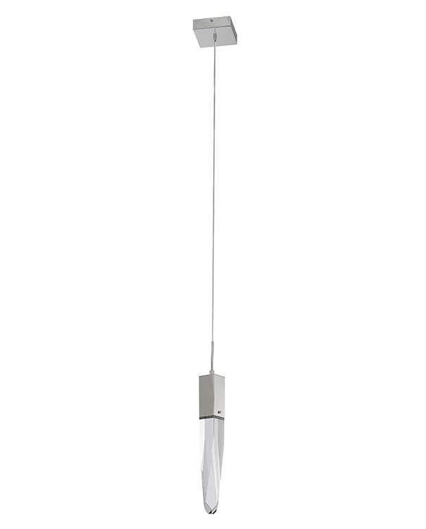 A CHROME FRAME SINGLE PENDANT LIGHT WITH A CLEAR ICEBERG CRYSTAL