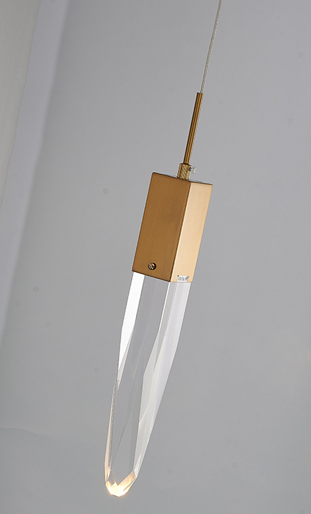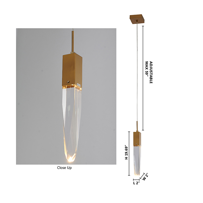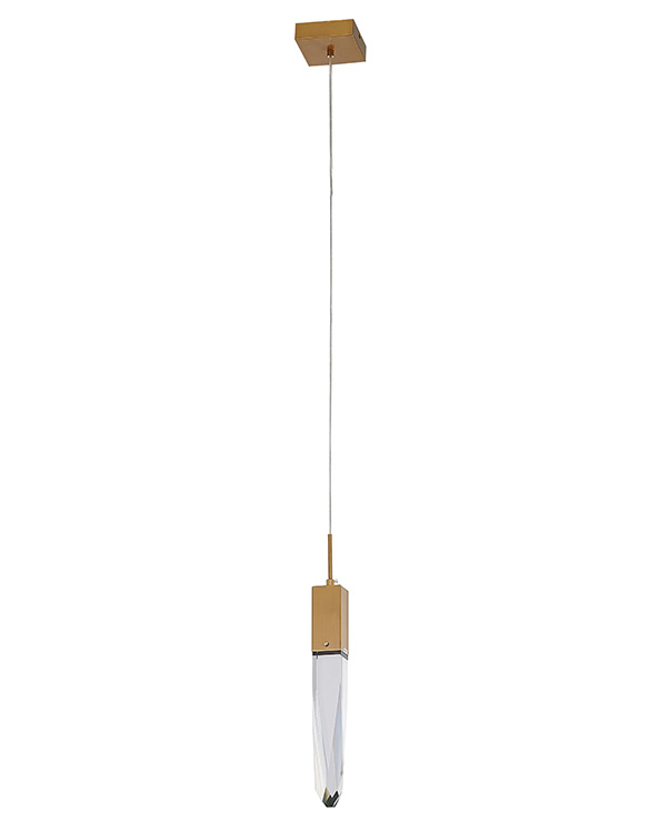 A GOLD FRAME SINGLE PENDANT LIGHT WITH A CLEAR ICEBERG CRYSTAL