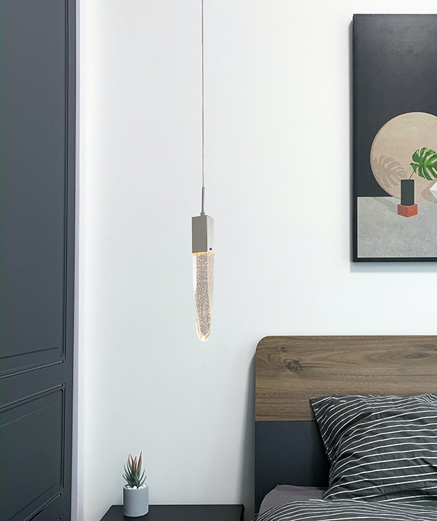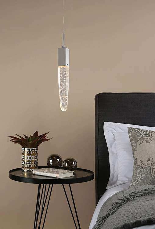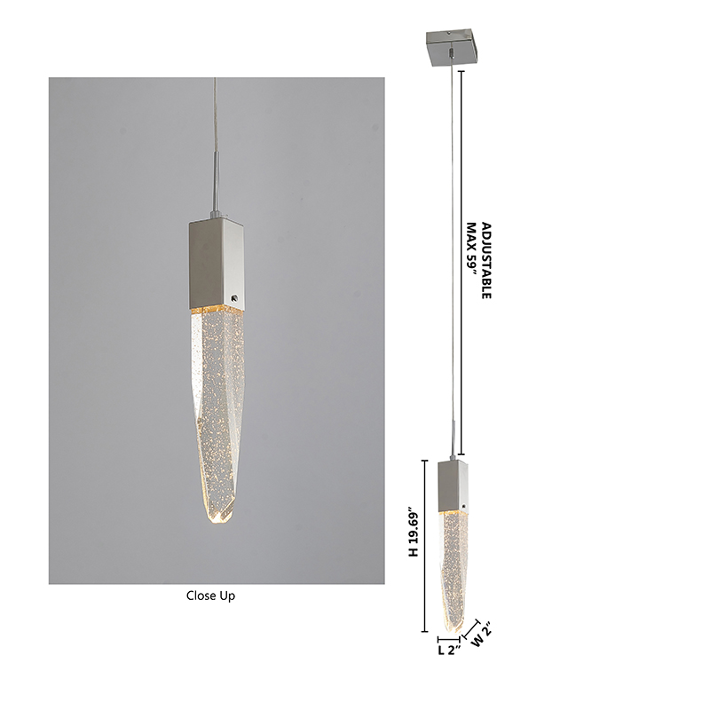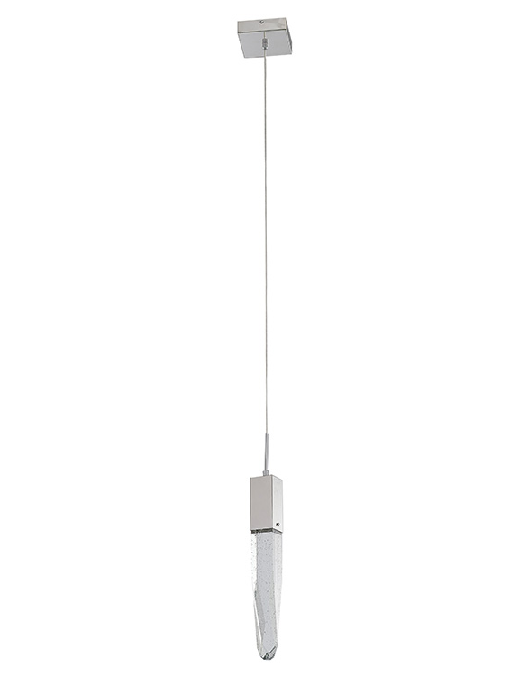 A CHROME FRAME SINGLE PENDANT LIGHT WITH A CLEAR ICEBERG BUBBLE CRYSTAL