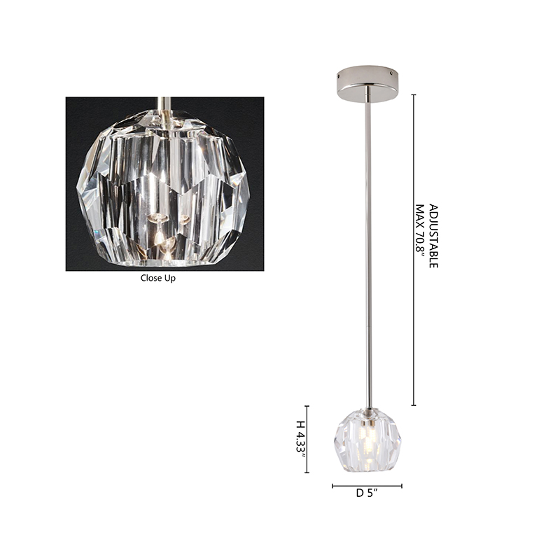 A POLISHED NICKEL PENDANT LIGHT WITH A CLEAR CRYSTAL SHADE