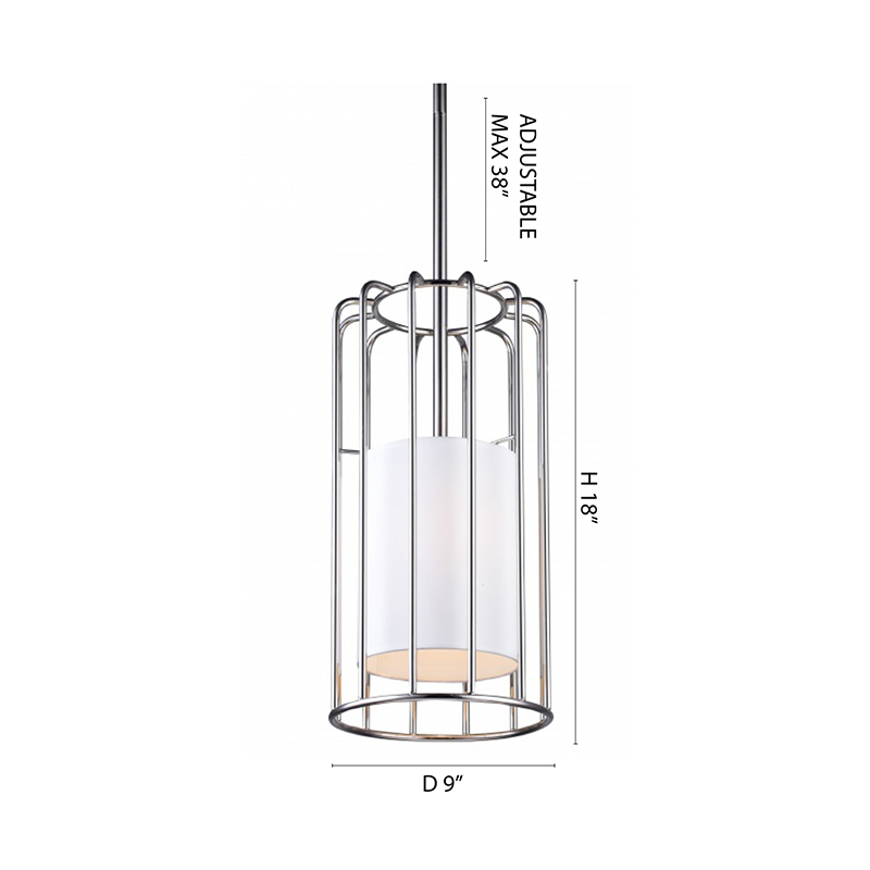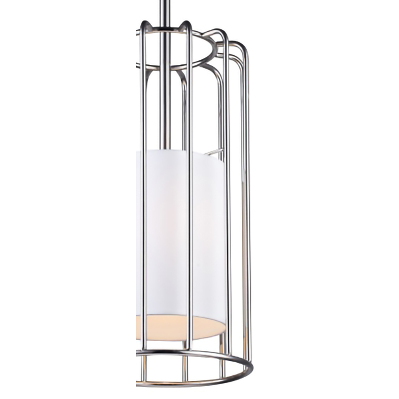 SHINY NICKEL CAGE SINGLE PENDANT LIGHT WITH WHITE FABRIC SHADE INSIDE