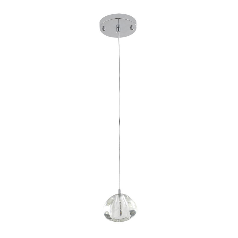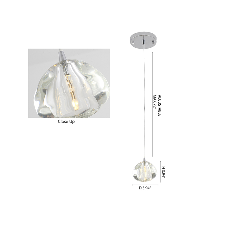 A CLEAR GLASS PENDANT LIGHT WITH CHROME HARDWARE