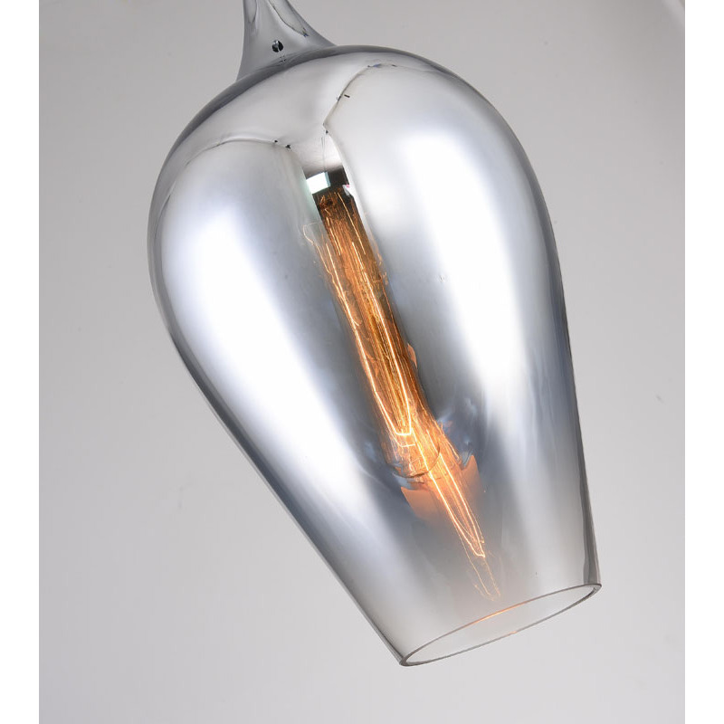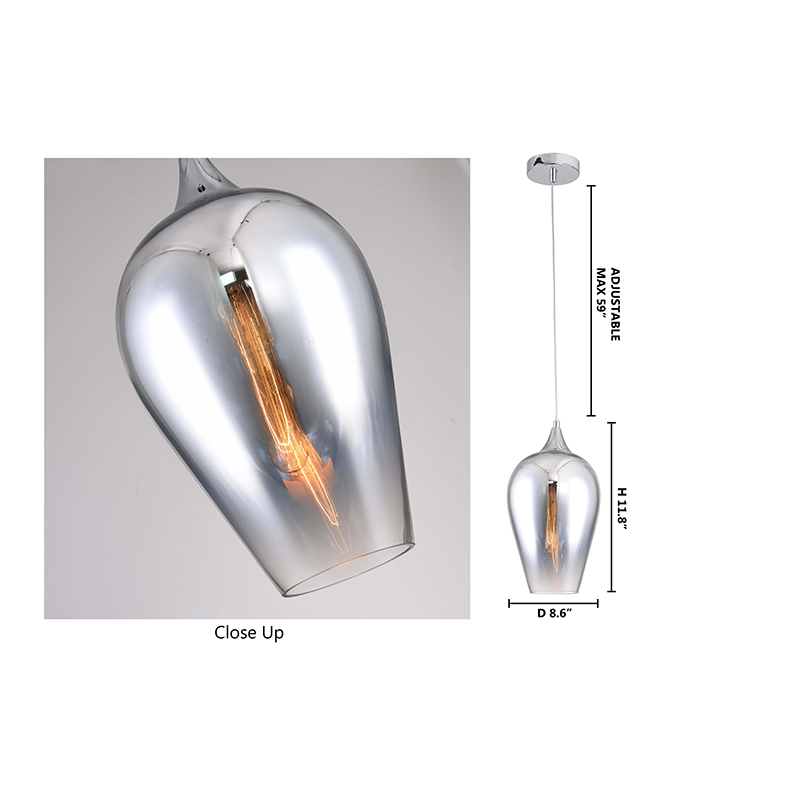 A SINGLE PENDANT LIGHT WITH A REFLECTIVE CHROME FADED GLASS SHADE