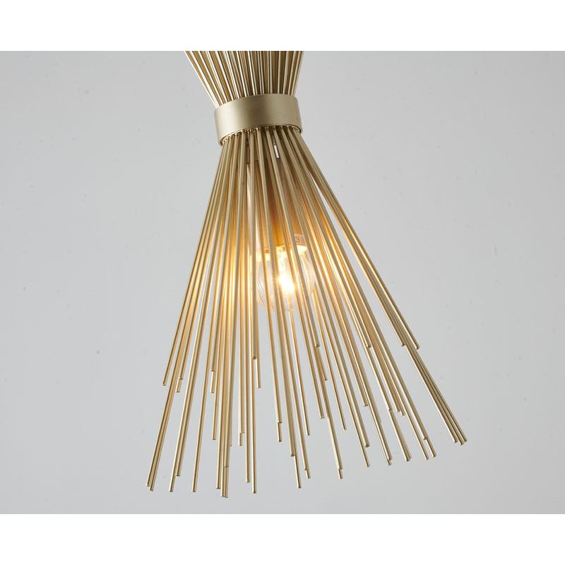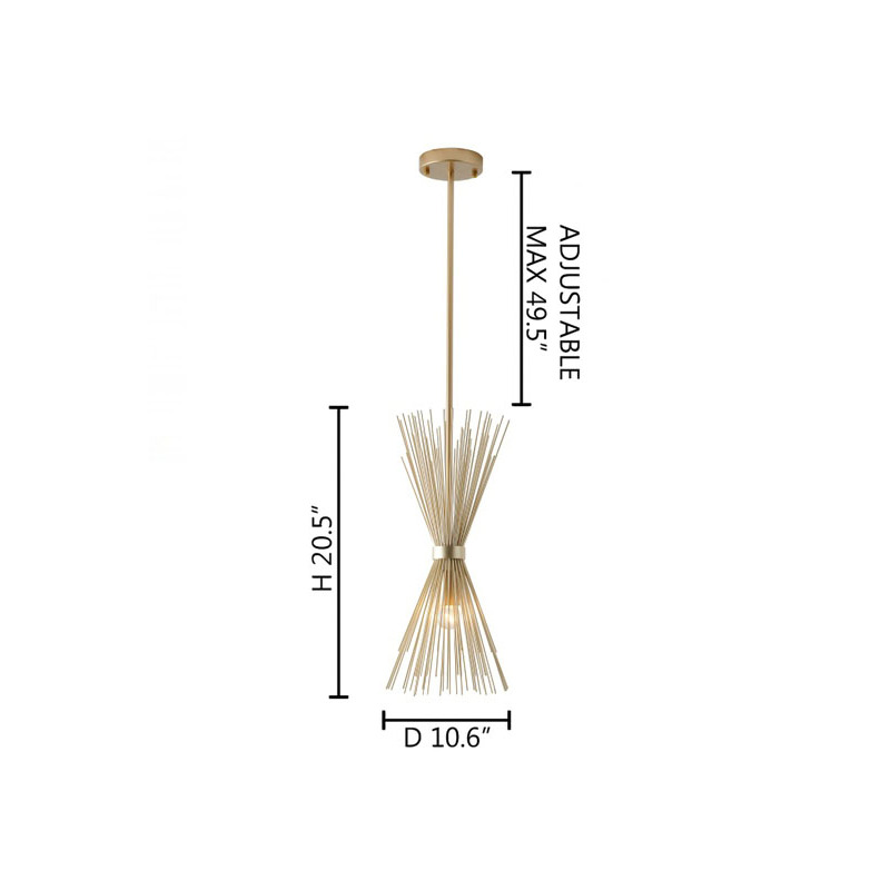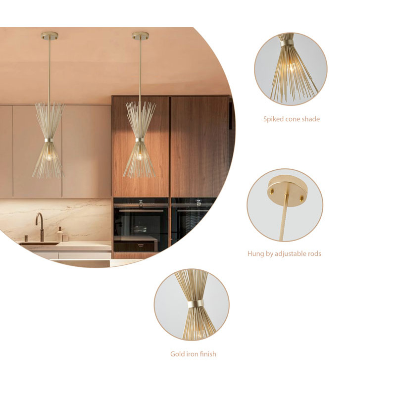 A GOLD IRON PENDANT WITH A SPIKED CONE SHADE