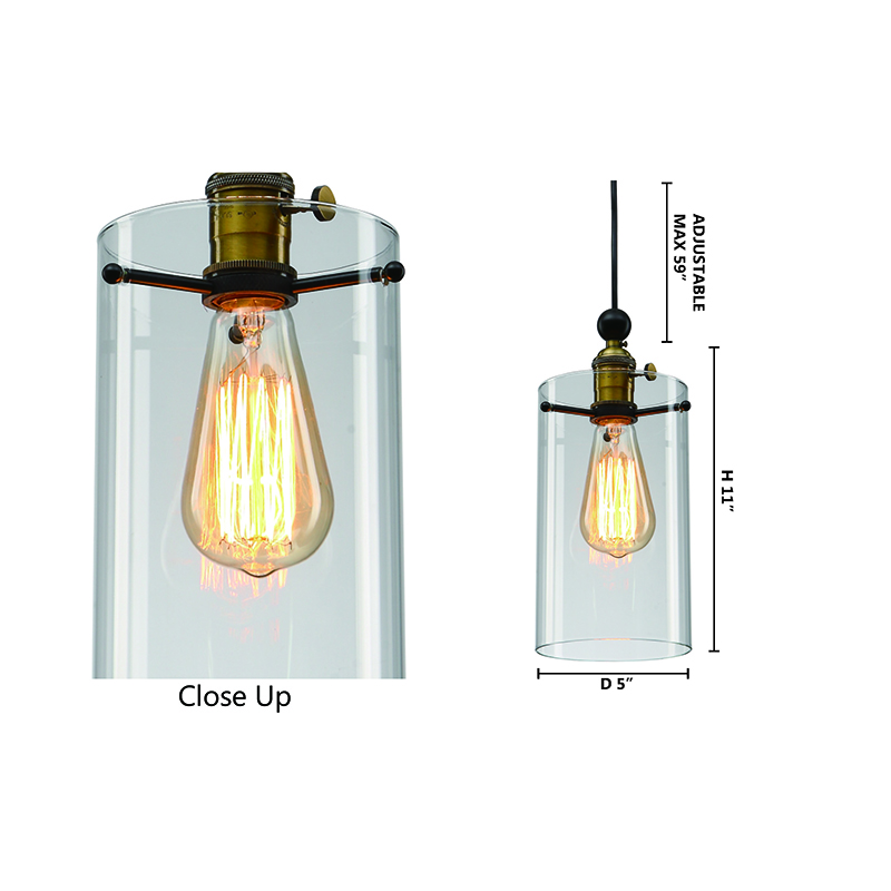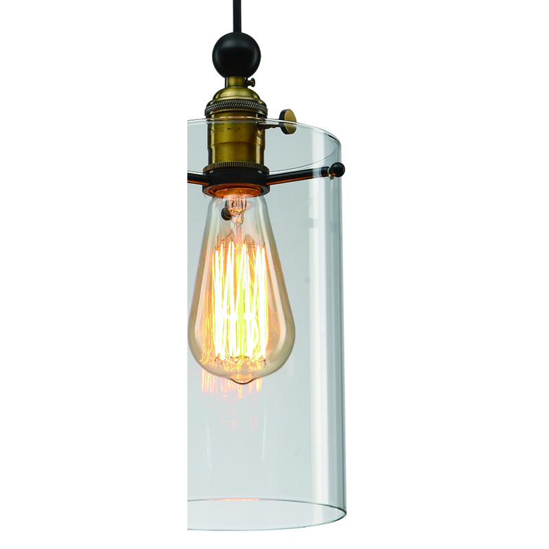 A BLACK AND BRASS FRAME SINGLE PENDANT LIGHT WITH A CLEAR GLASS SHADE