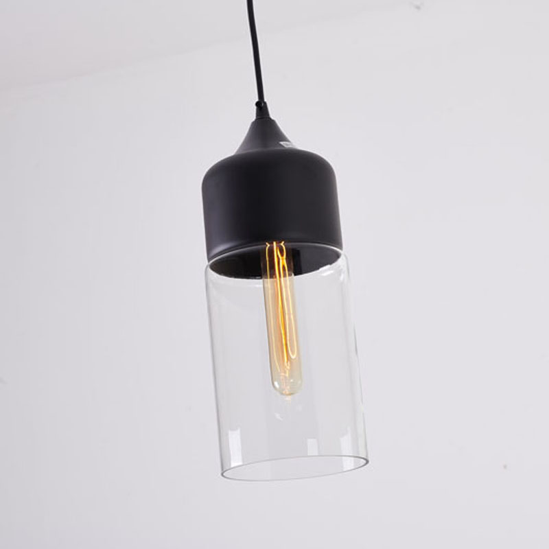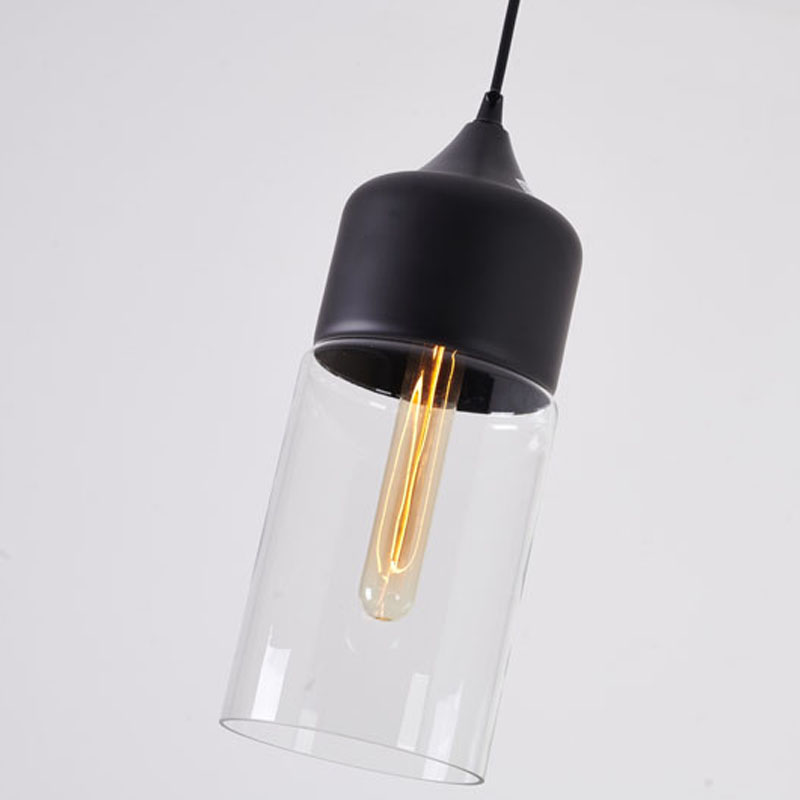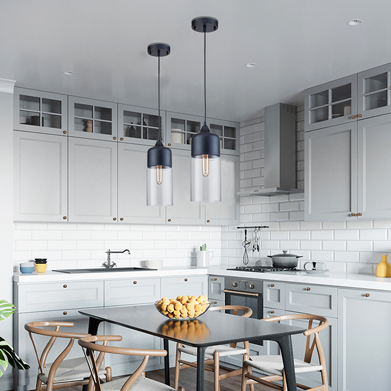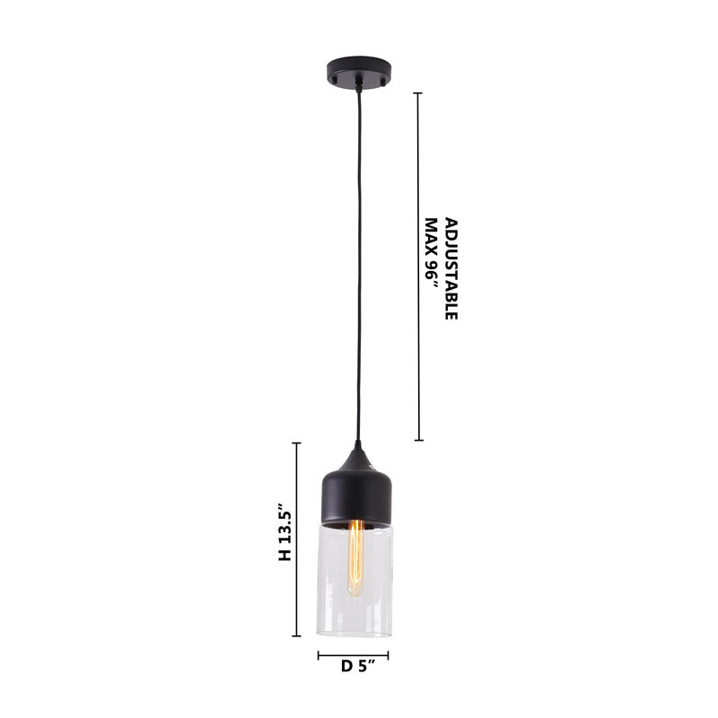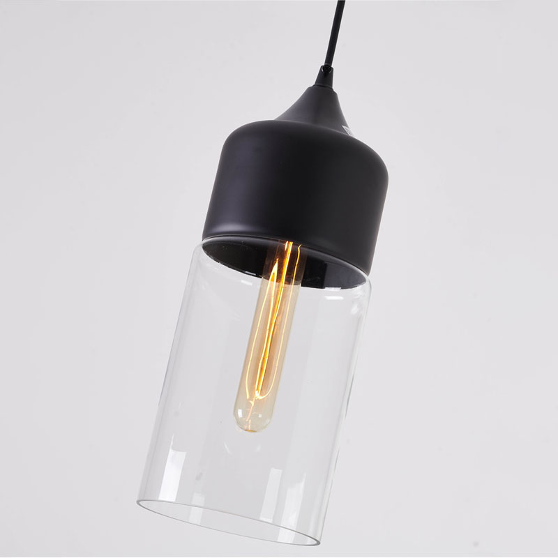 A MATTE BLACK FRAME SINGLE PENDANT LIGHT WITH A CLEAR GLASS SHADE