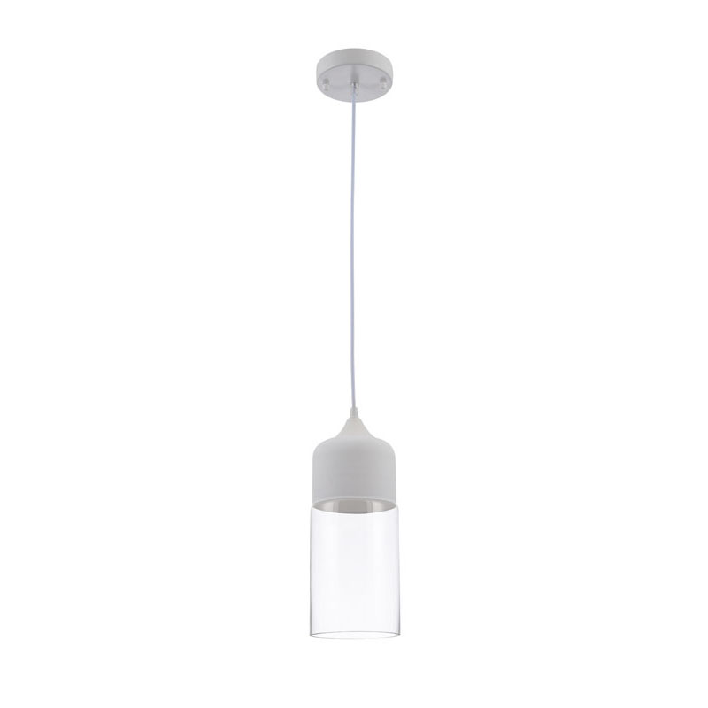MATTE WHITE SINGLE PENDANT LIGHT WITH A CLEAR GLASS SHADE