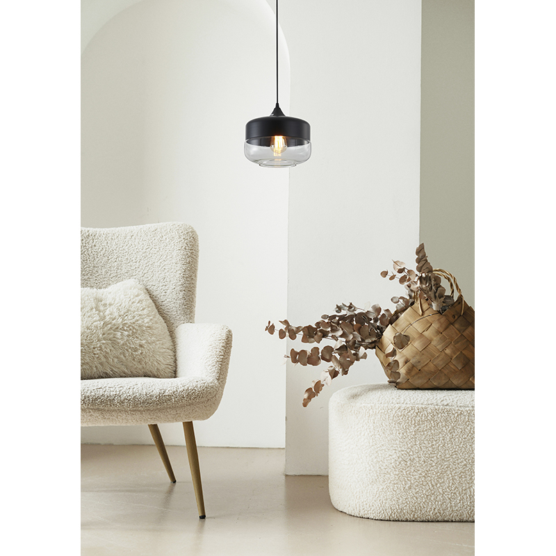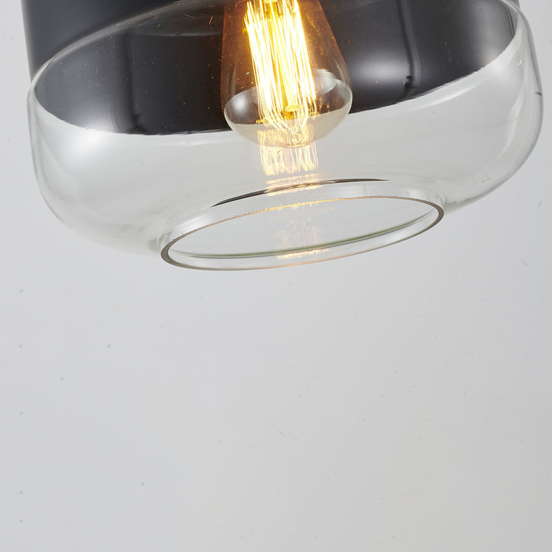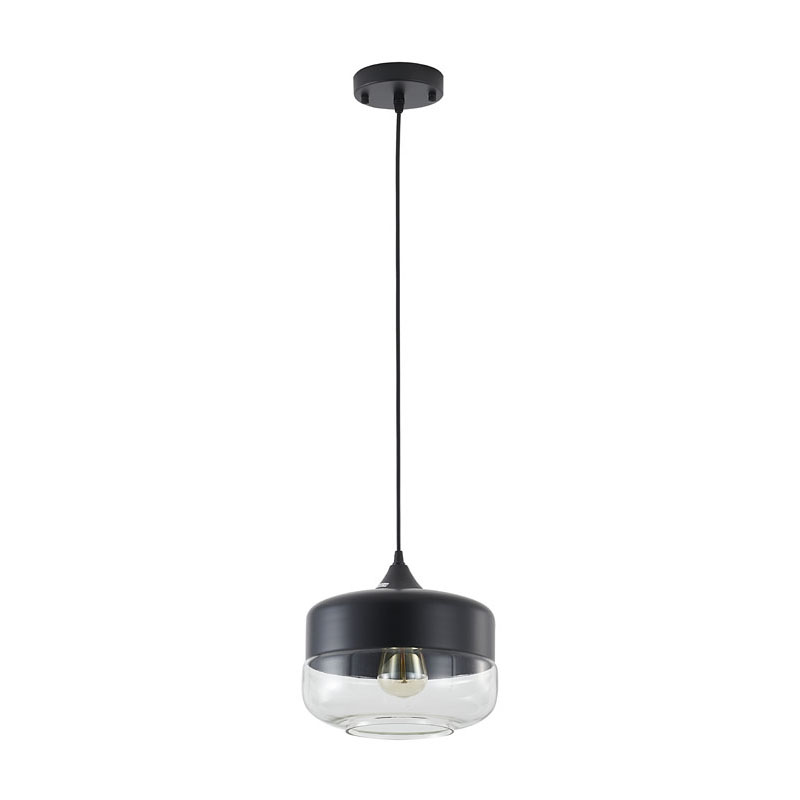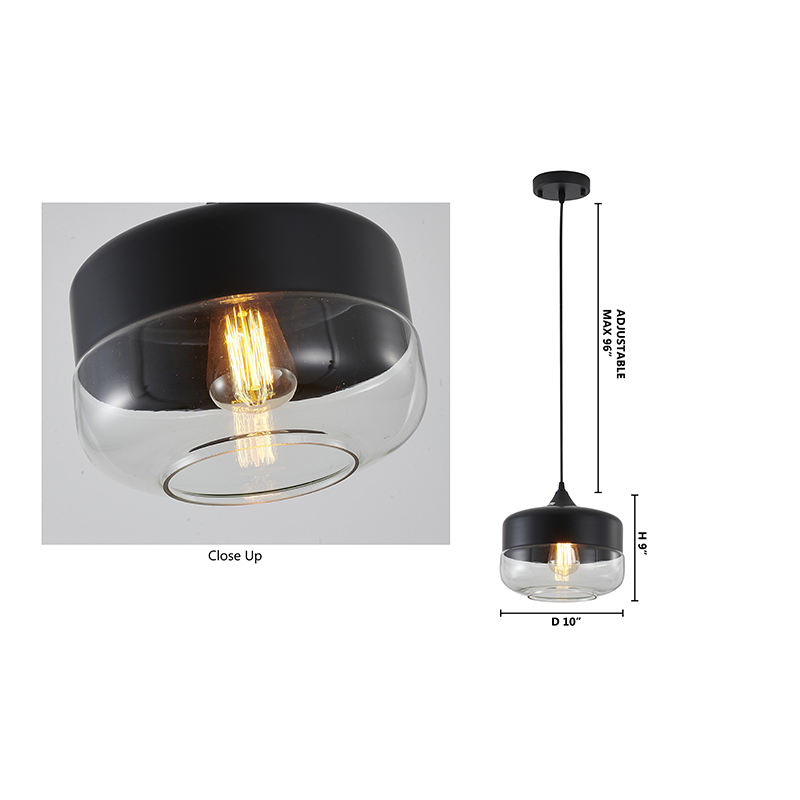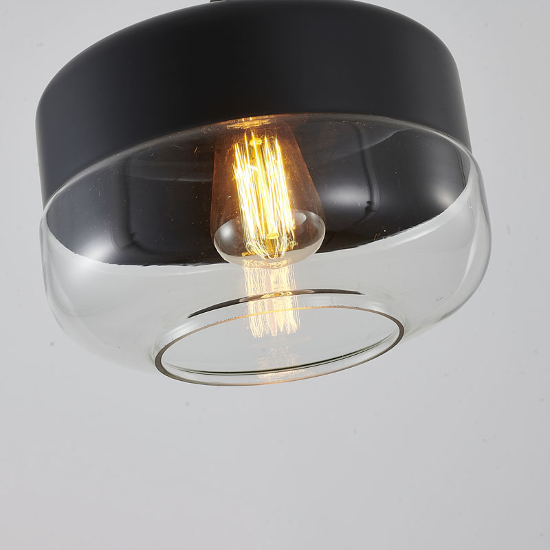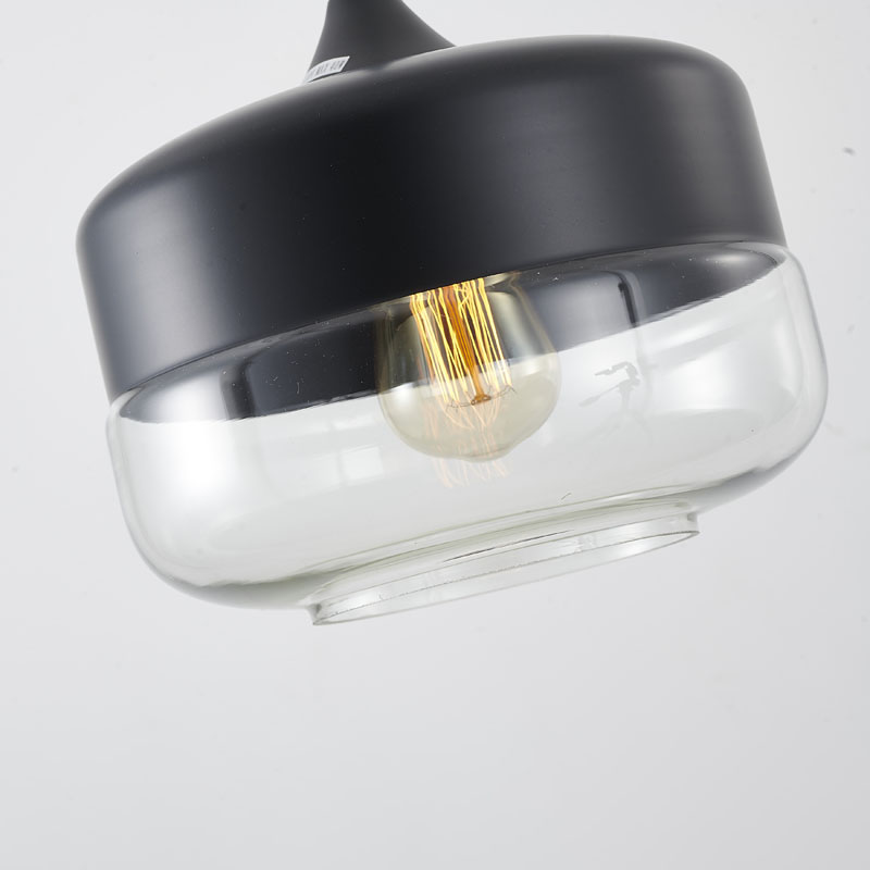 A MATTE BLACK SINGLE PENDANT LIGHT WITH A CLEAR GLASS SHADE