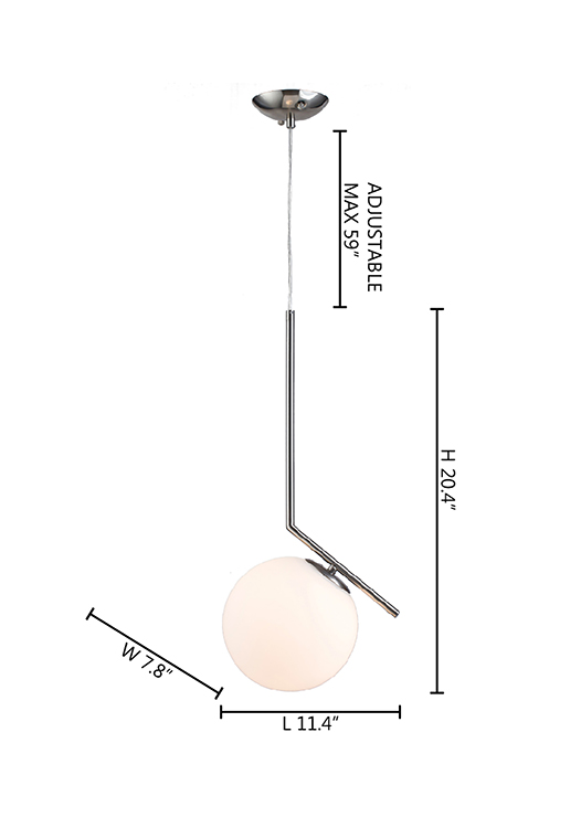 A SATIN NICKEL IRON FRAME SINGLE PENDANT LIGHT WITH A MILK WHITE GLASS SHADE